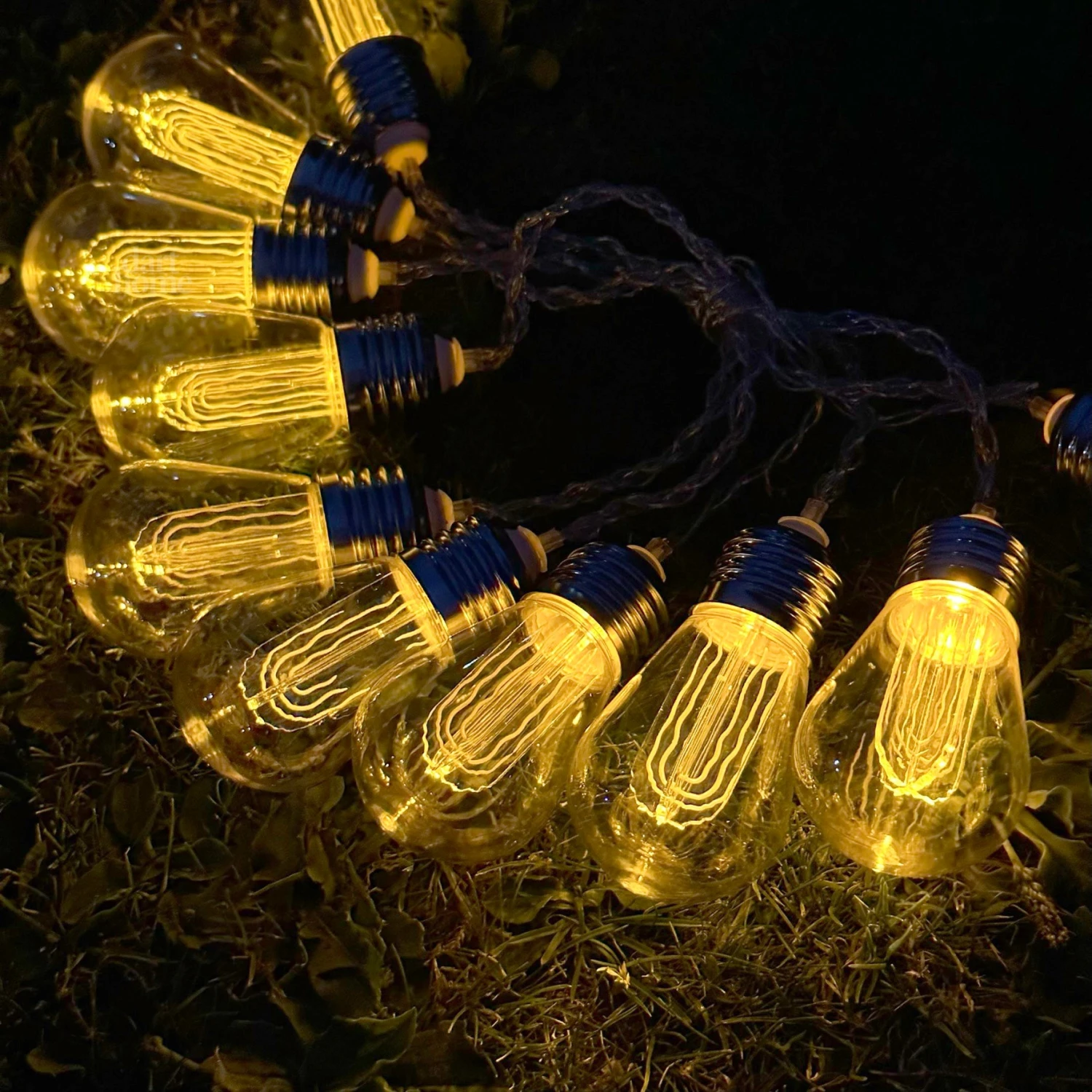 Create an inviting atmosphere with 10 warm white edison bulb outdoor lights. Enjoy up to 60 days of use per 3x AA battery set and conserve energy with the 8 multi-function settings. Each bulb features a drainage hole for 365 day outdoor use and a timer setting for 6 hours of light every night. Enjoy a bright, inviting space with these outstanding lights.