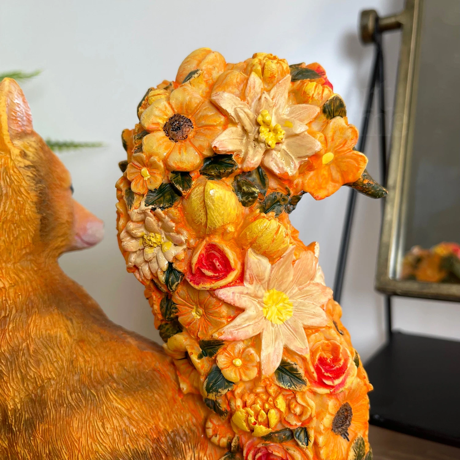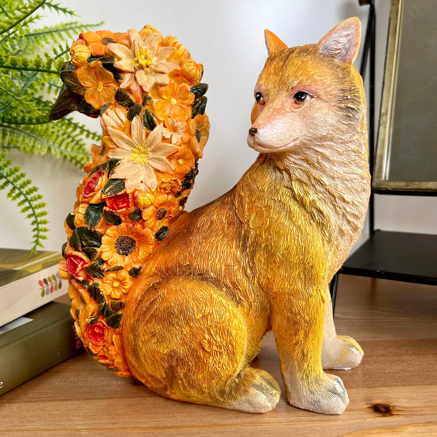 Decorate your home with bright autumnal colours with this resin Flower fox ornament. This fox pops with life and colour that will fit the season perfectly.