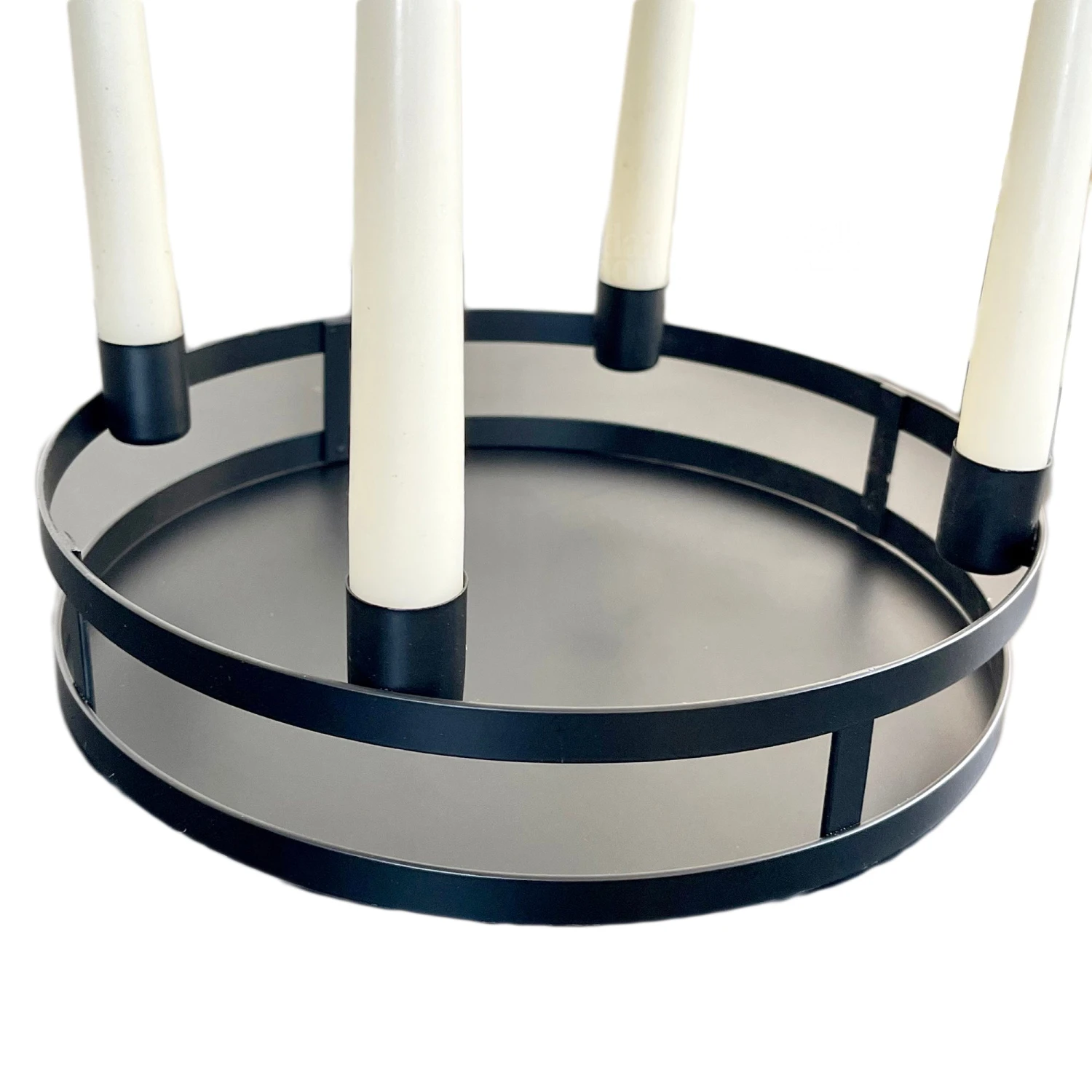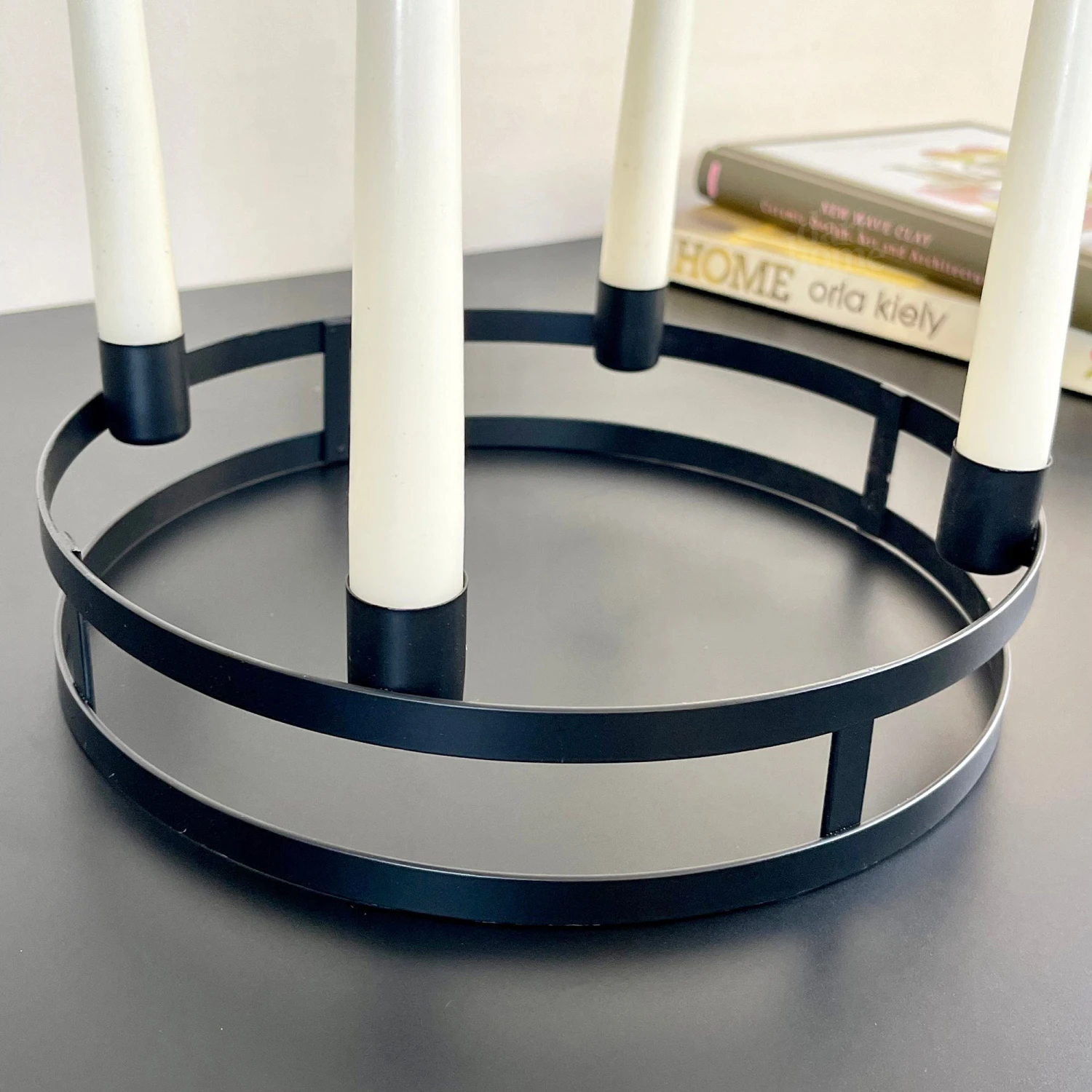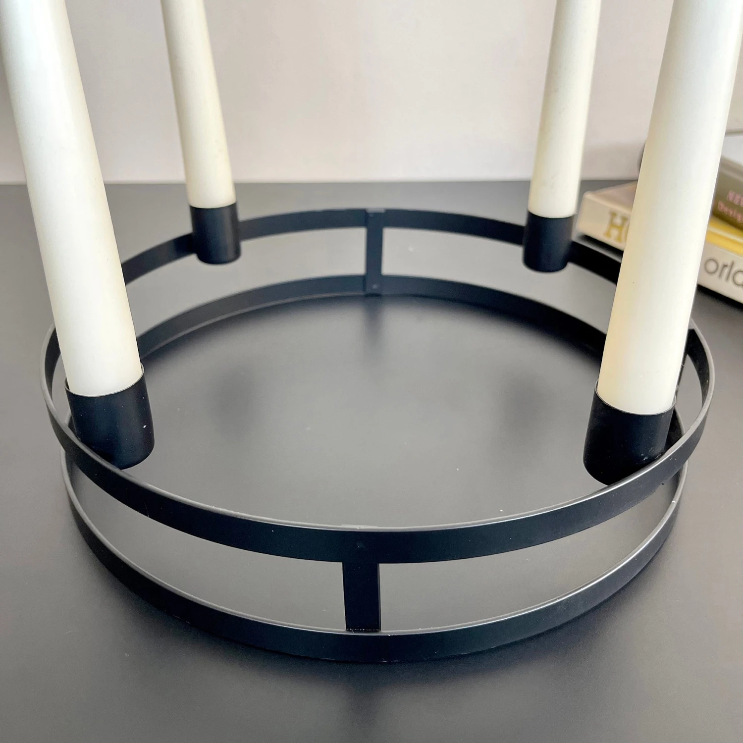 A multi arm circular candlestick holder that can raise four church candles, this quirky monochrome round candlestick holder captures a classic design in a smooth matt black finish. It will easily mix into your exiting neutral home decor wherever it is placed, whether that be in the living room, bedroom or bathroom.