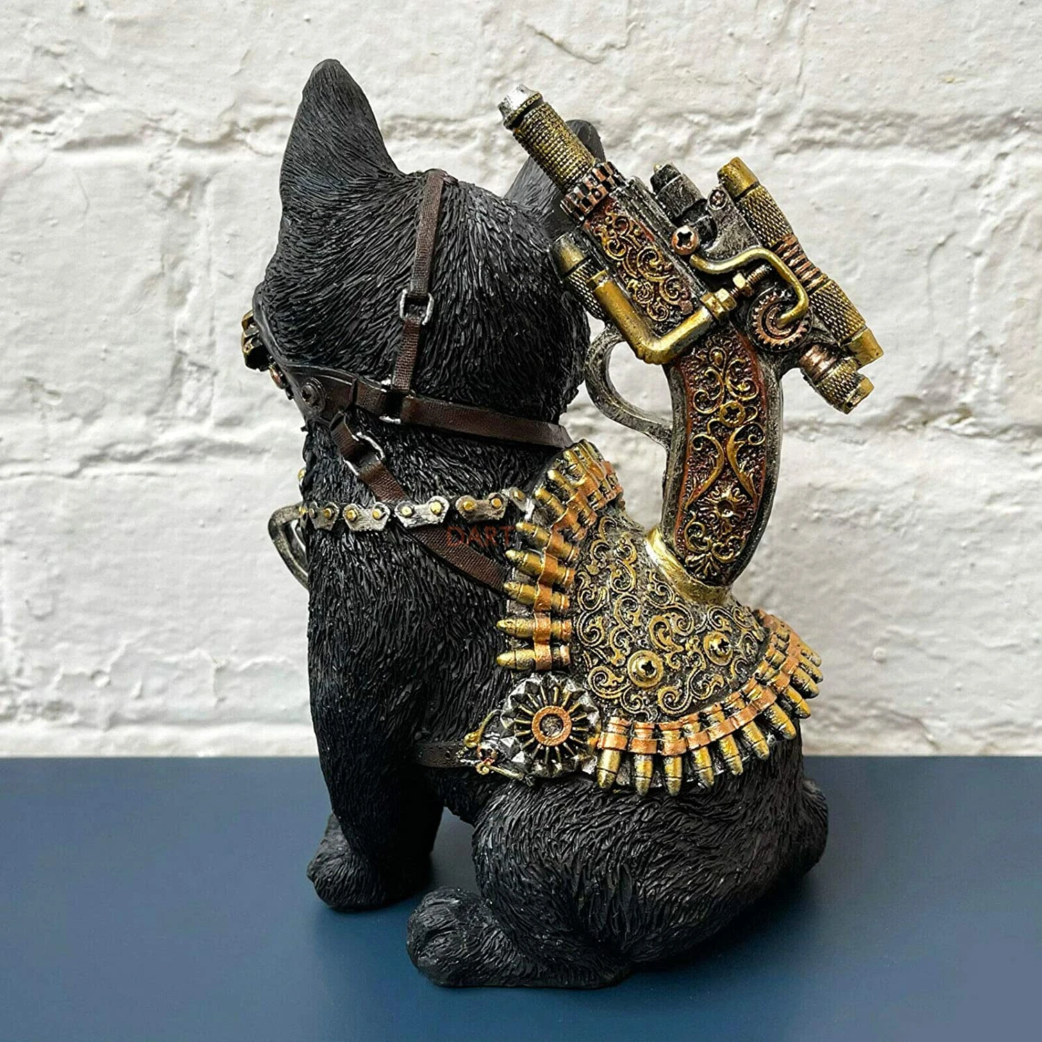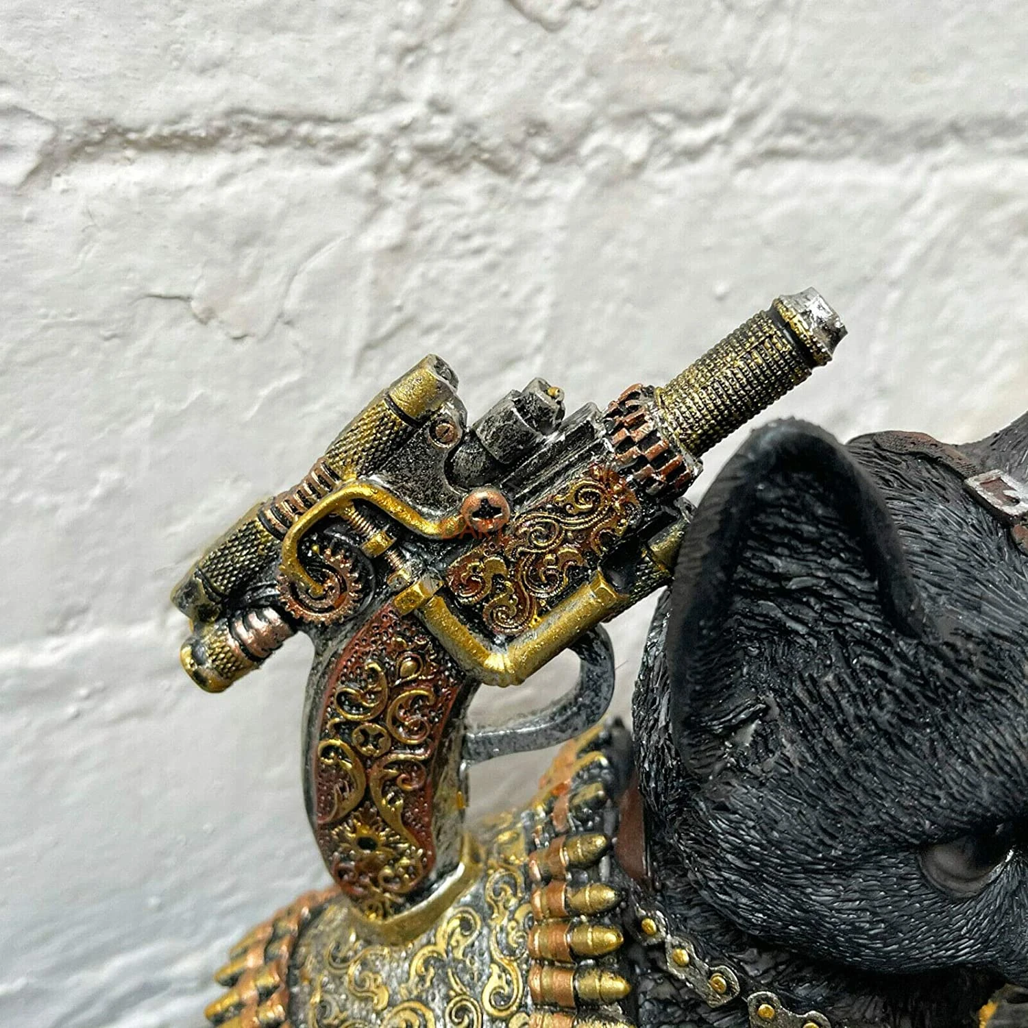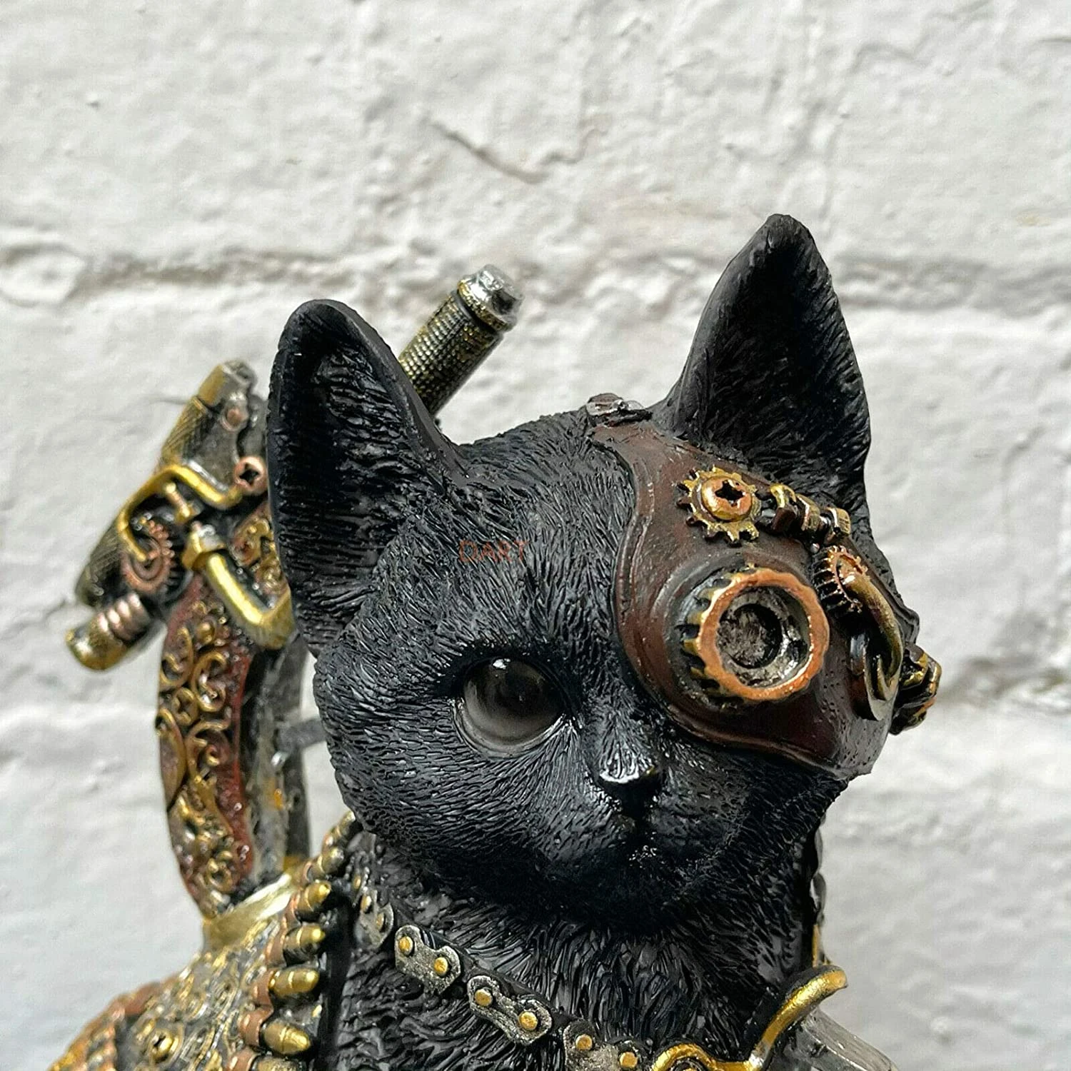 This is a fantastic steampunk themed resin black sitting kitten statue. It is finished with a deep black colour with bronzegolden and silver finished mechanical parts. Brilliant gift idea for the sci-fi, gothic and fantasy lovers out there.