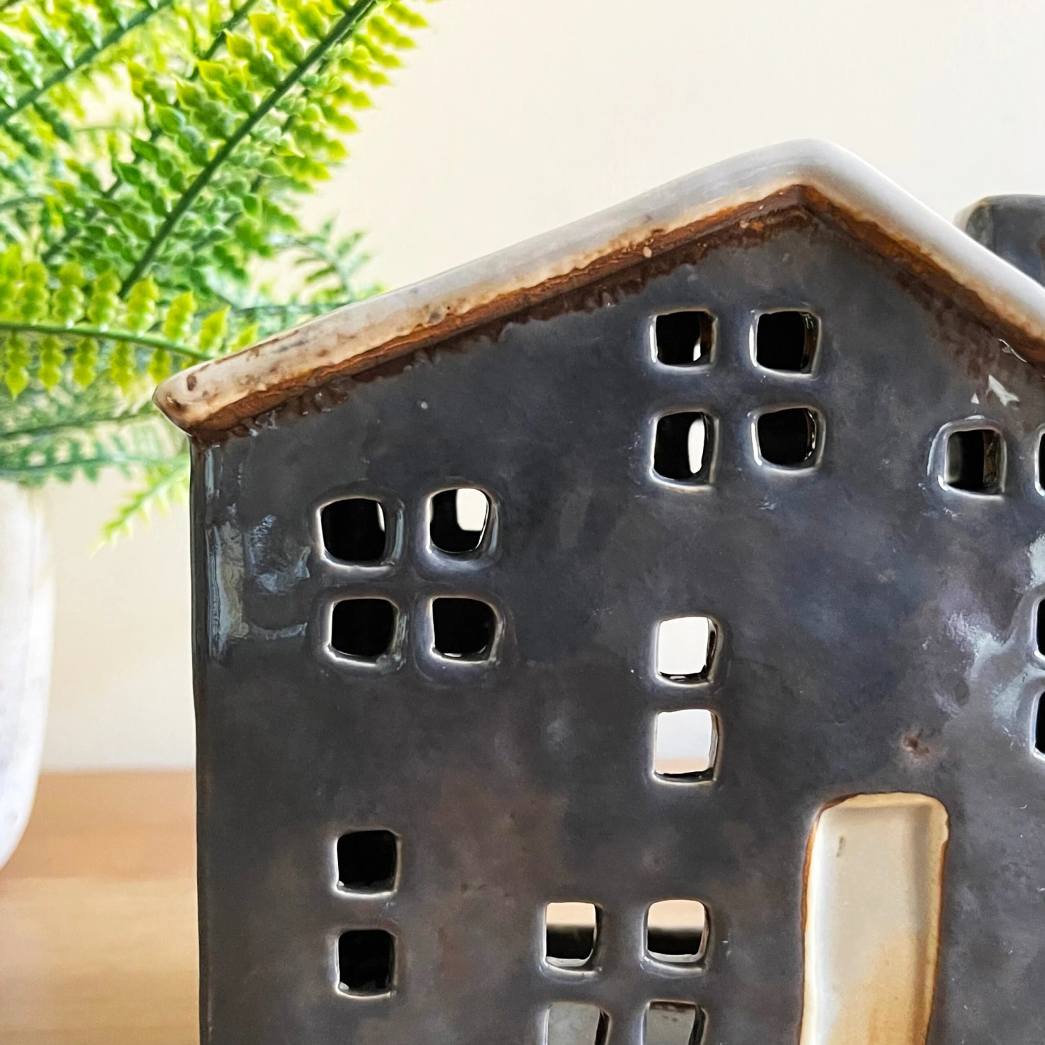 This ceramic village town house tea light holder is delocately made and painted to perfection. It will look great in any setting.