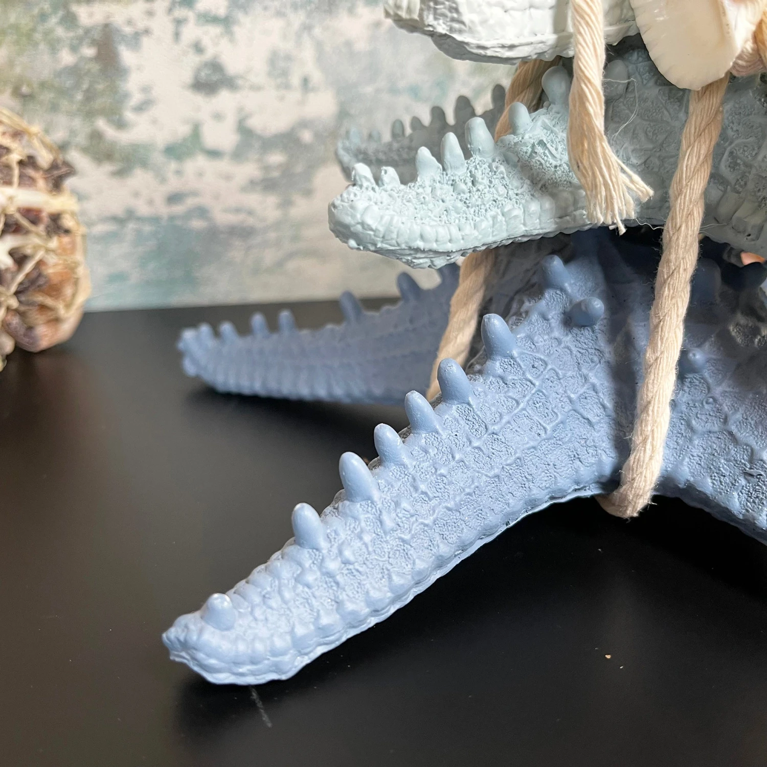 A nautical themed bathroom decoration featuring a trio of starfish tied in a traditional thick rope and completed with real shell pendants. These starfish offer a constant reminder of the seaside when sitting in your home and would be a wonderful addition to a mediterranean or nautical themed room.