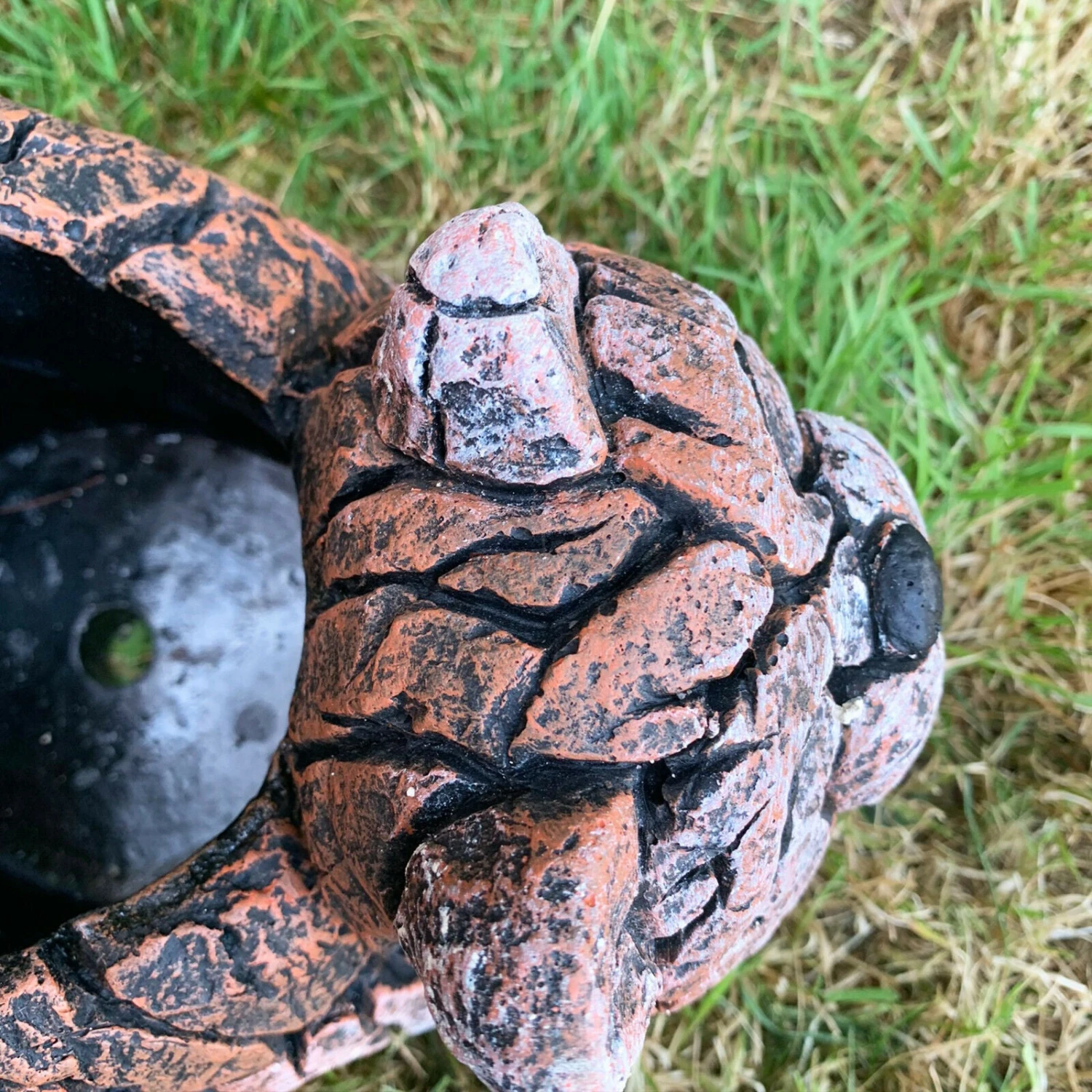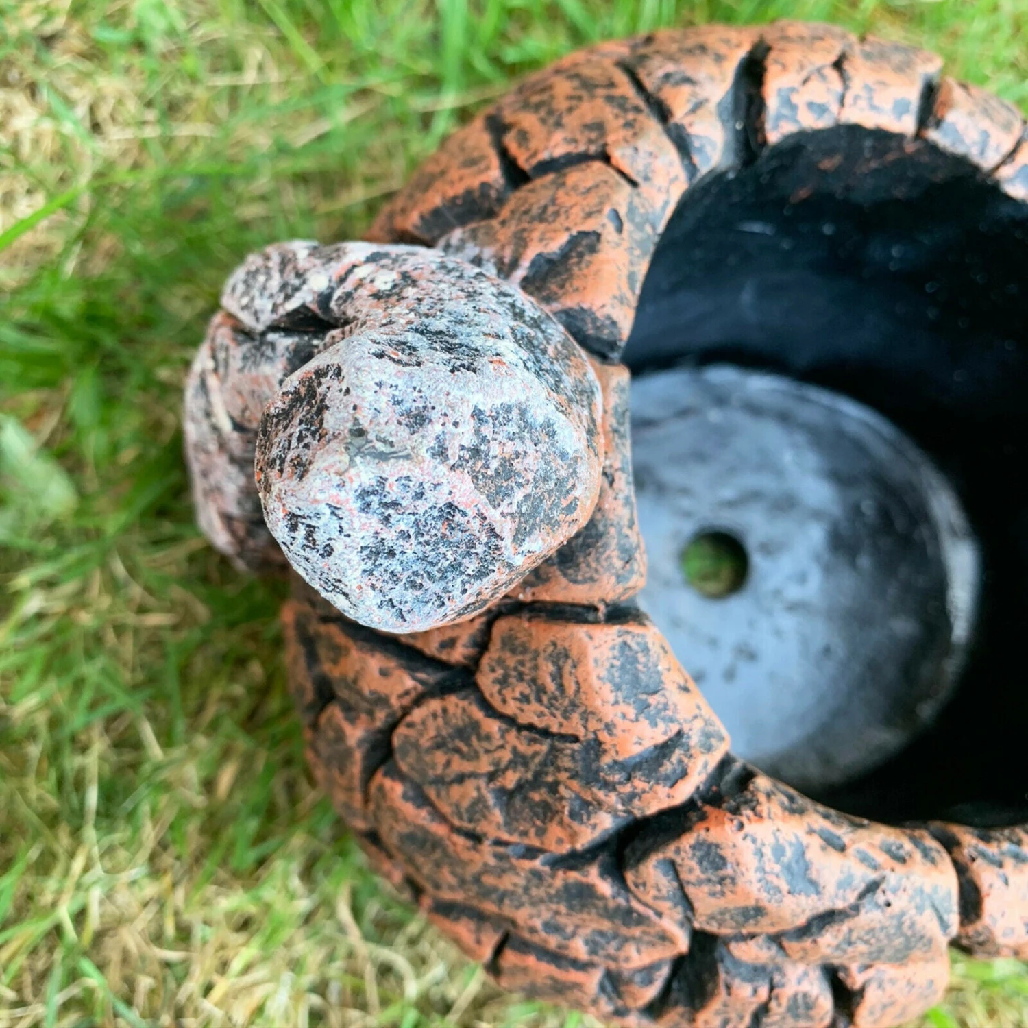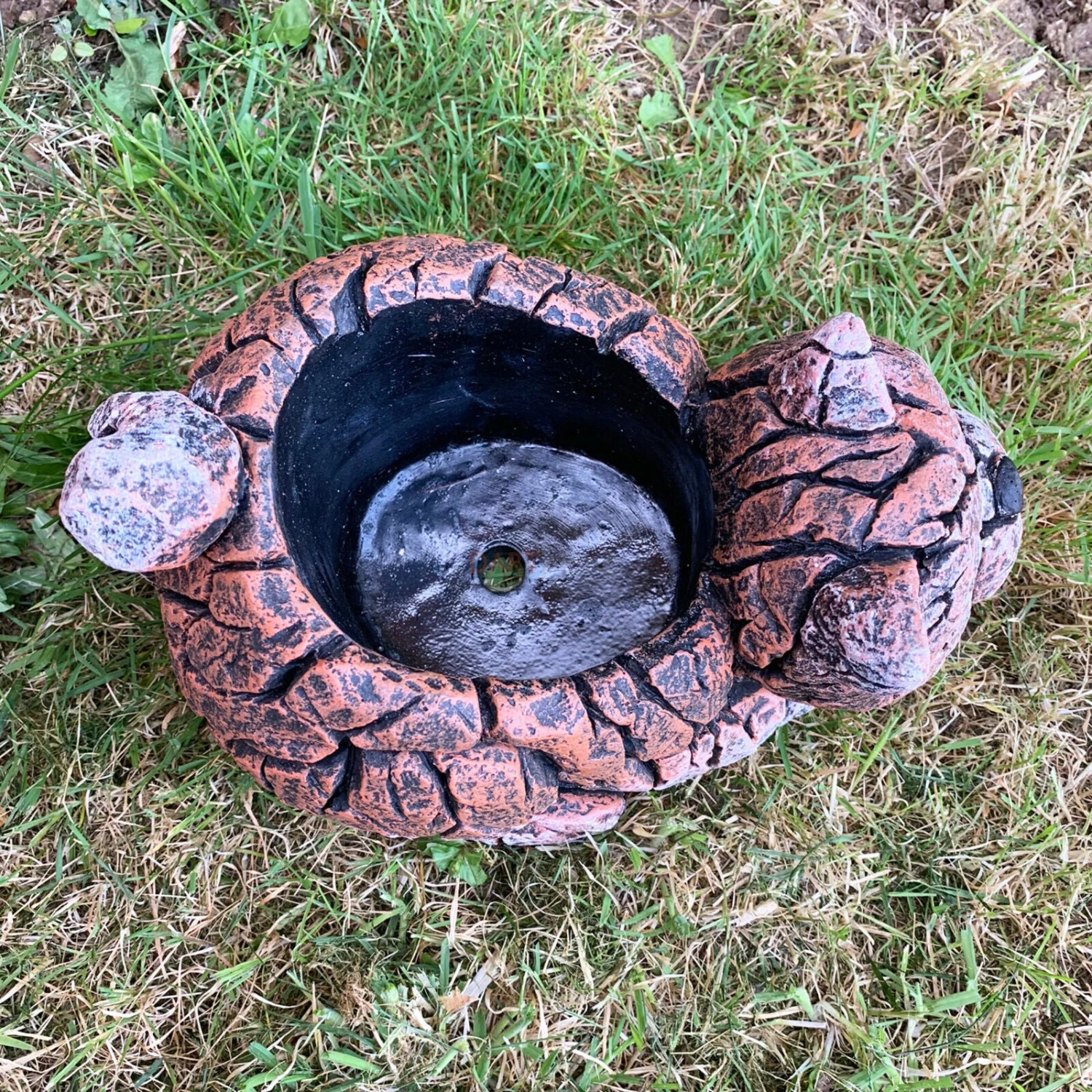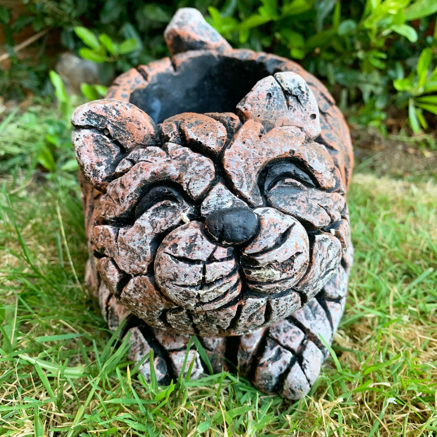 This cement plant pot is an outdoor heavy duty piece. It comes in a wood chunk effect sitting kitten / animal design. It is an excellently detailed flower pot. Planter comes with a drainage hole with optional plug making it useable indoors and outdoors.