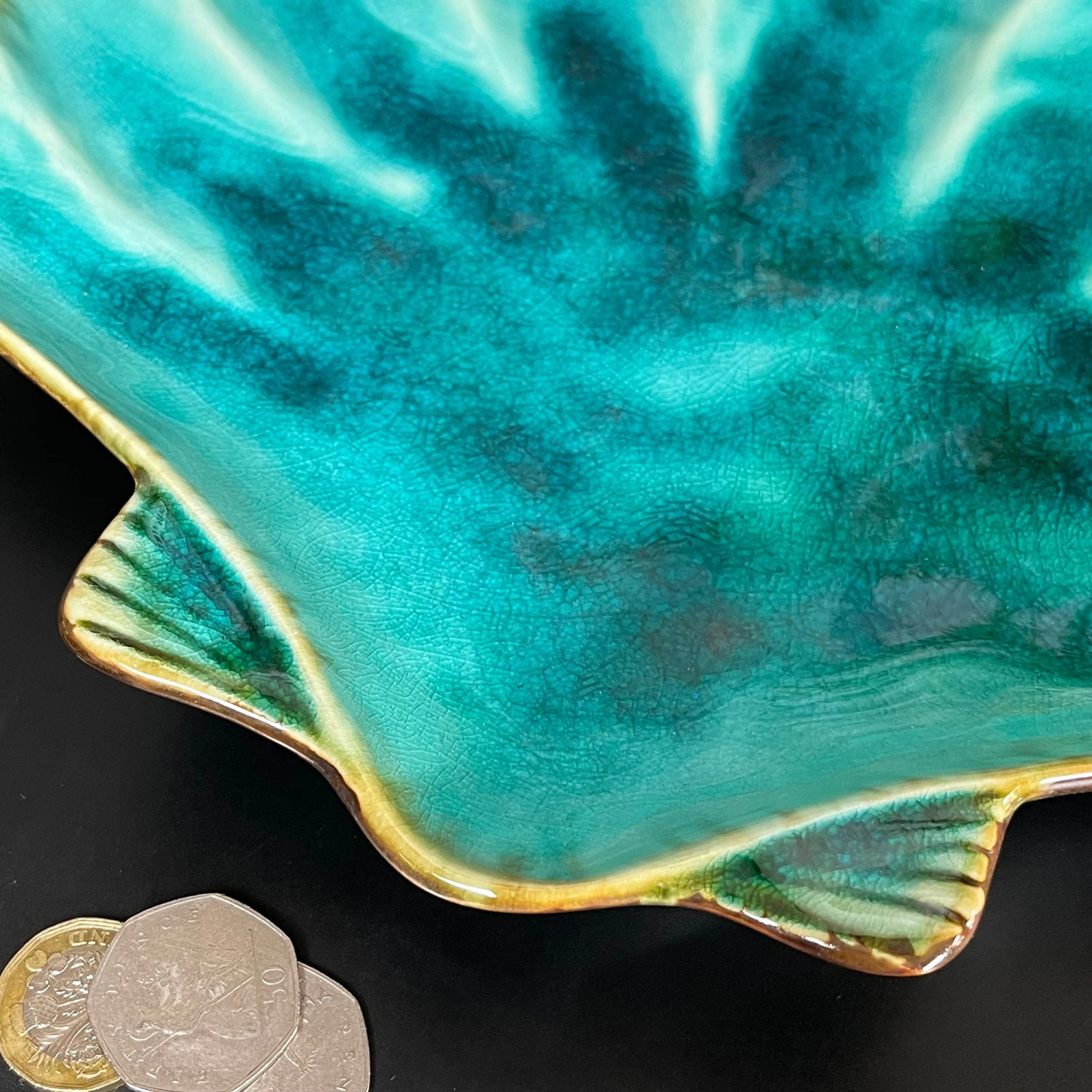 Contemporary seaside themed trinket dish featuring a beautiful teal blue scallop shell, made from glazed ceramic pottery. This brightly coloured decorative plate is ideal for jewellery, coins and keys. It is a perfect gift idea for a beach or seaside lover that will complete your home or bathroom decor.