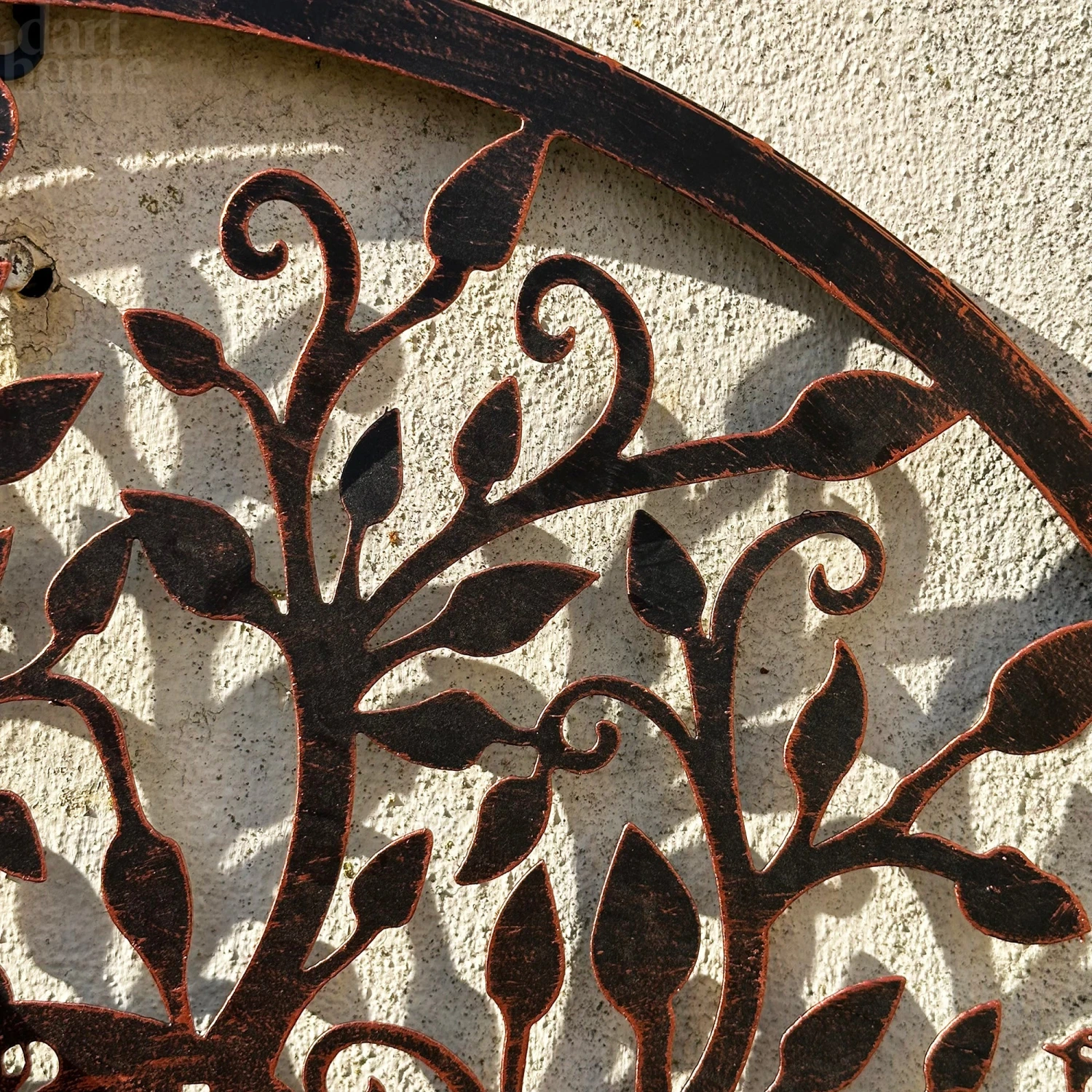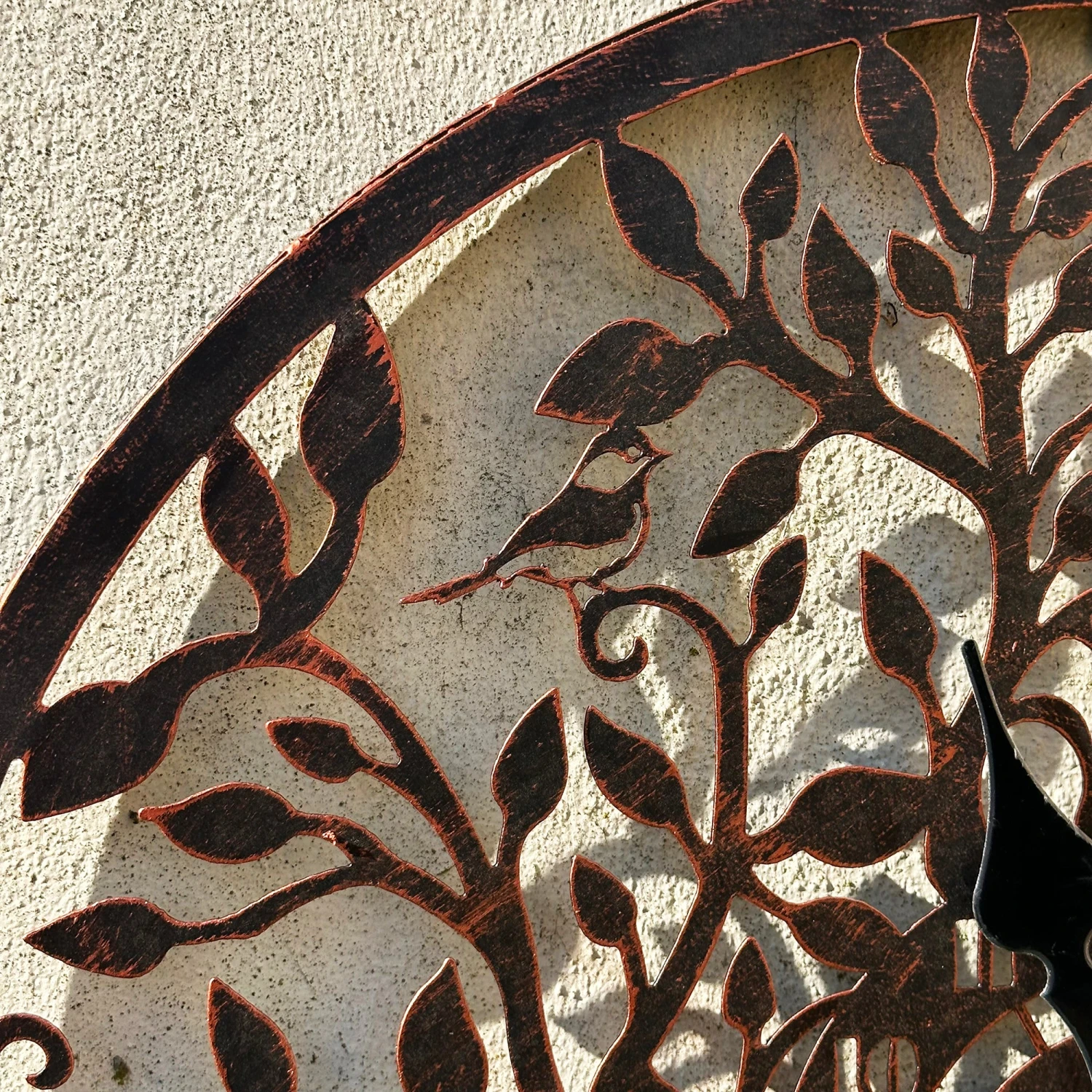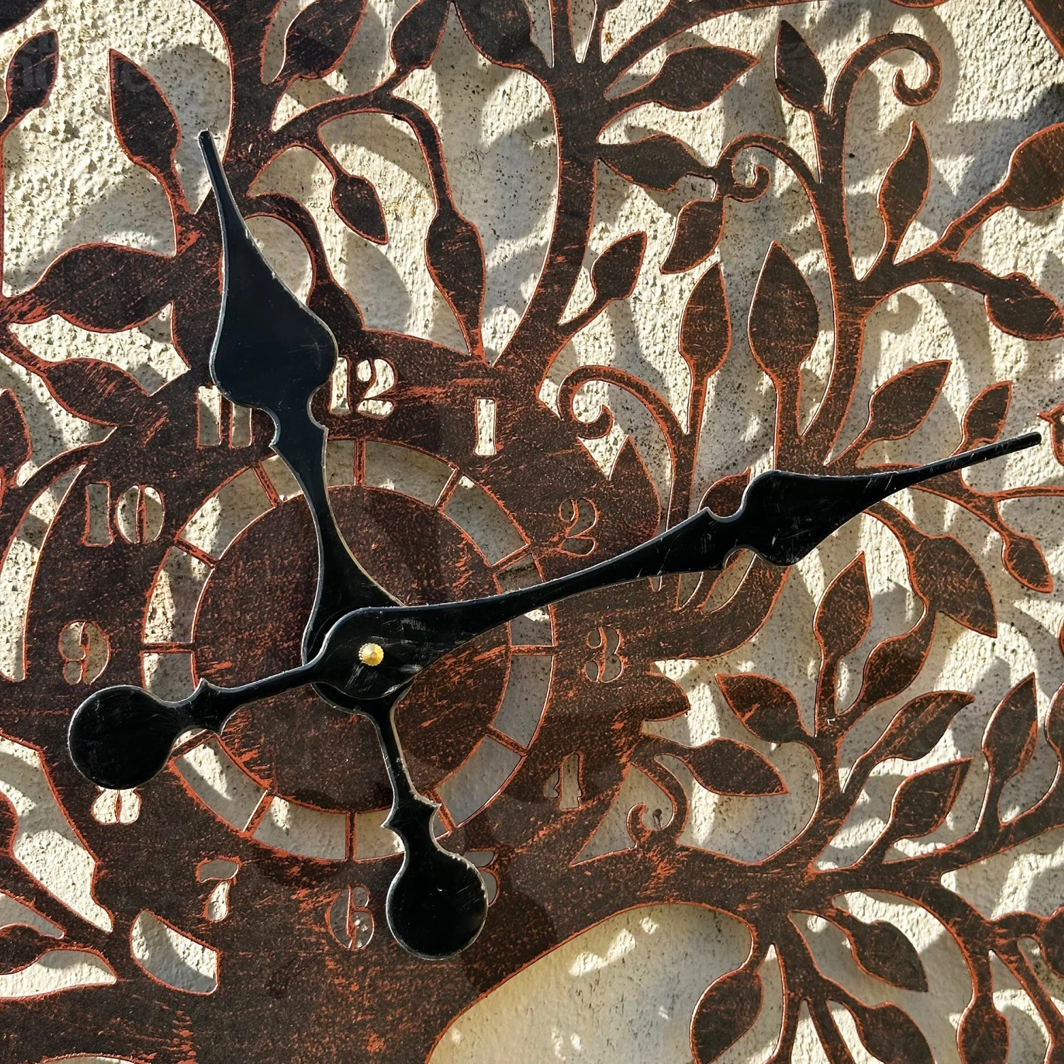Keep track of time even when you’re outdoors with our modern outdoor wall clock, boasting a copper tree of life design. This battery powered garden clock features an arabic numeral 12 hour display and deep black hands to add an elegant touch. This clock is suitable for year-round outdoor use.