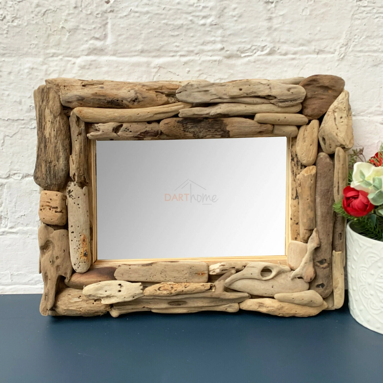 Features: Rectangular Mirror, Driftwood Chunks, Wall Mounted, Rustic Style,