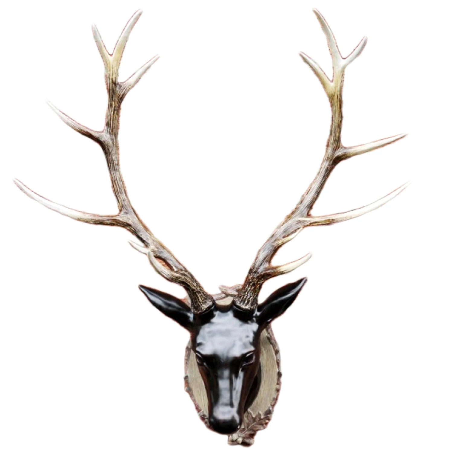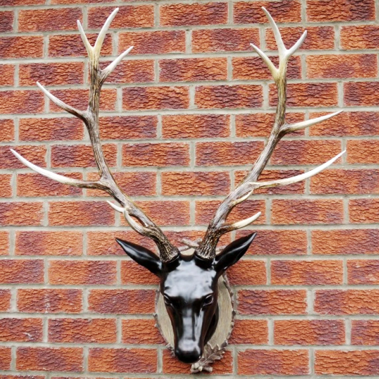 This wall mounted extra large stags head boasting a glossy black head with detachable long wood effect antlers is made from resin with beautiful detail and texturing. It will look great in your home.
