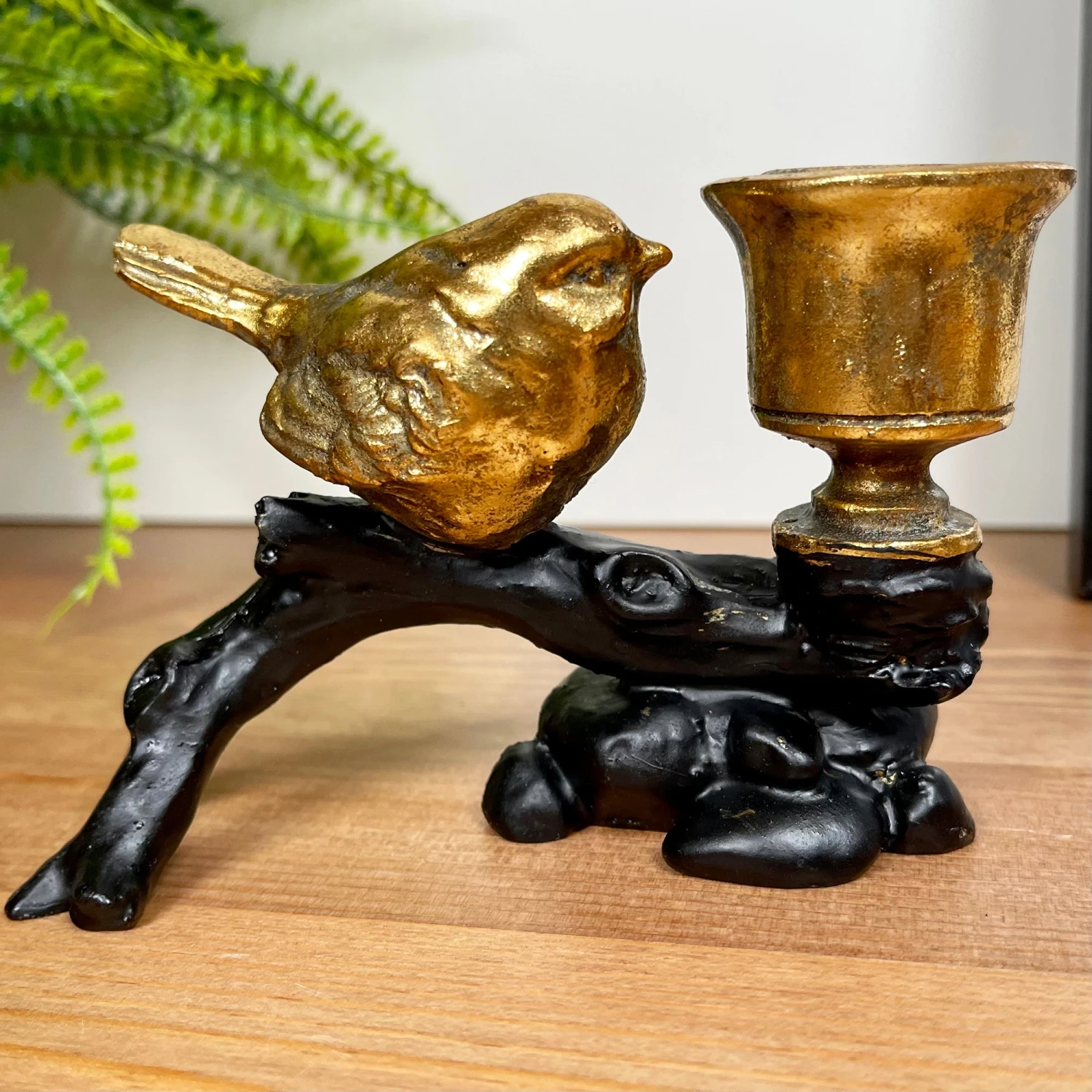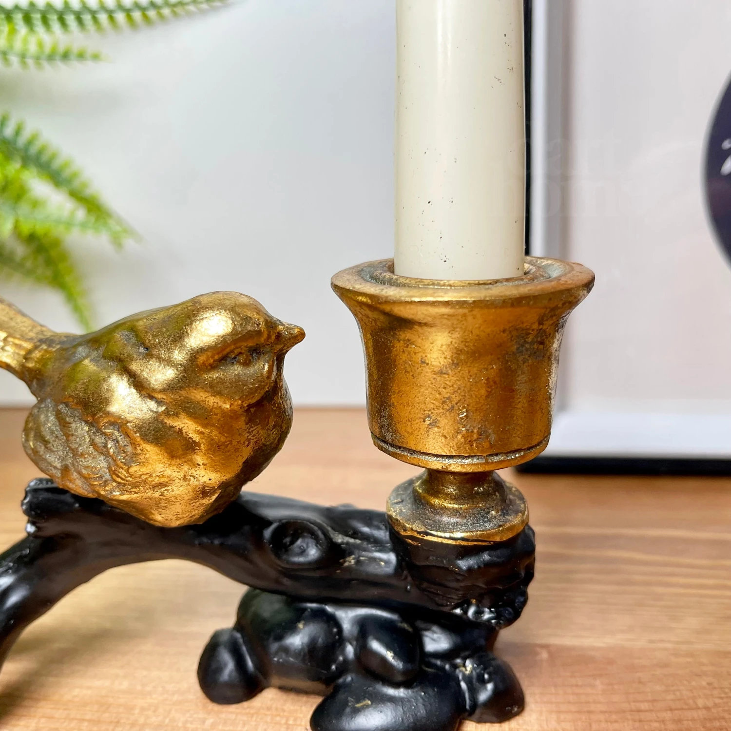 This quirky, vibrant candlestick holder captures a golden perched robin sat upon a deep black branch. It will easily mix into your exiting home decor wherever it is placed, whether that be in the living room, bedroom or bathroom.