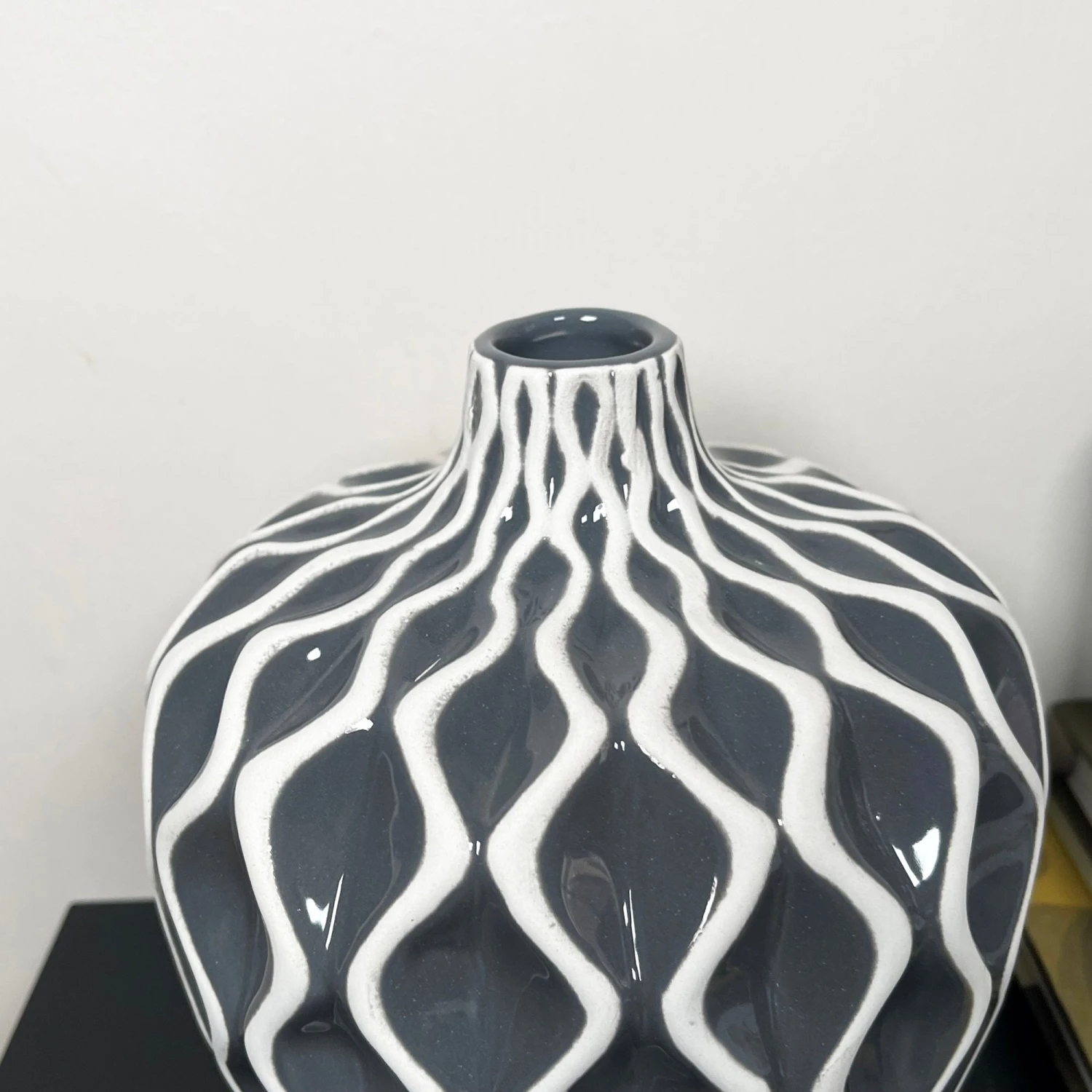 Add an abstract touch into your home with this mesmerising deep grey vase with unglazed contrasting white ripple pattern for decoration. This artistic bottle vase is perfect for flower buds and stems as well as looking elegant empty in a display.