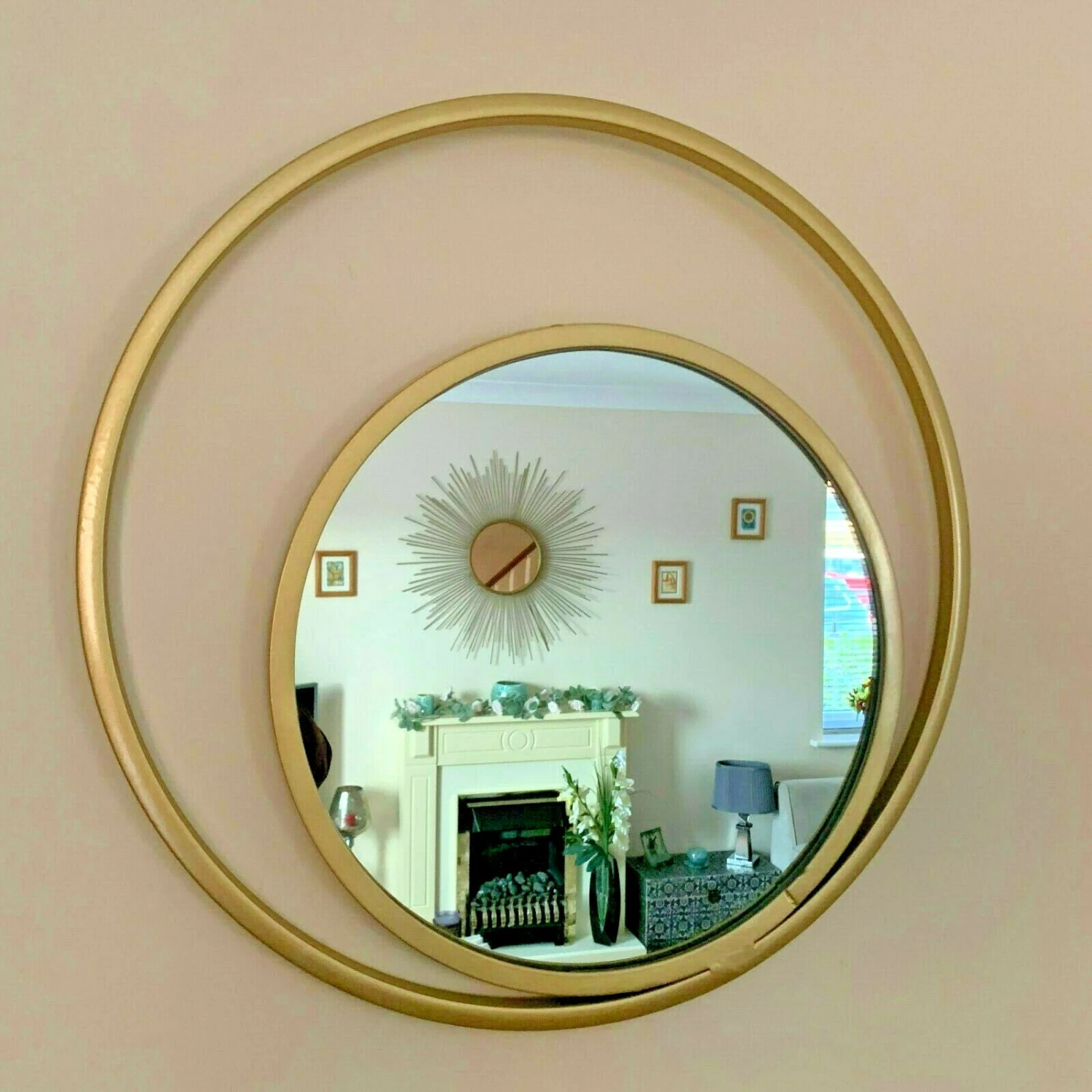 This gorgeous industrial style mirror would look great in any room in the home. In a popular gold colour this mirror can be placed anywhere in the house whether it be the hallway or the bathroom it is sure to look great. This is very easy to hang on the wall, with a very lightweight design and fixings on the back.