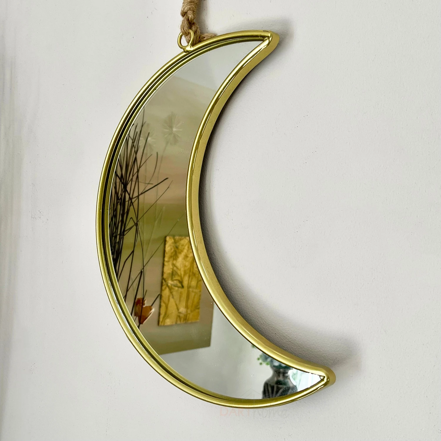 Features: Metal Frame, Rope Hanging, Wall Mountable, Indoor, Crescent Moon Shape