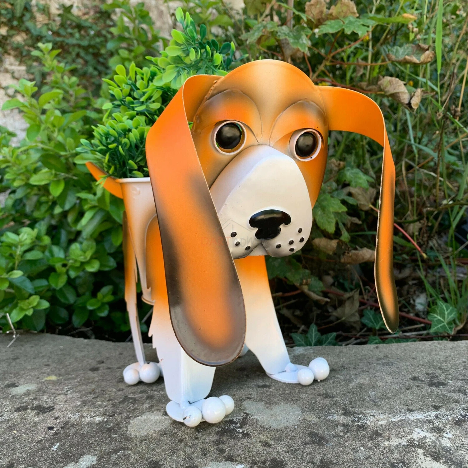 Create spectacular floral displays with a this metal beagle dog planter in an orange finish with black tints. Simply choose your favourite flowers and create a fabulous display that is sure to have guests talking for all the right reasons.