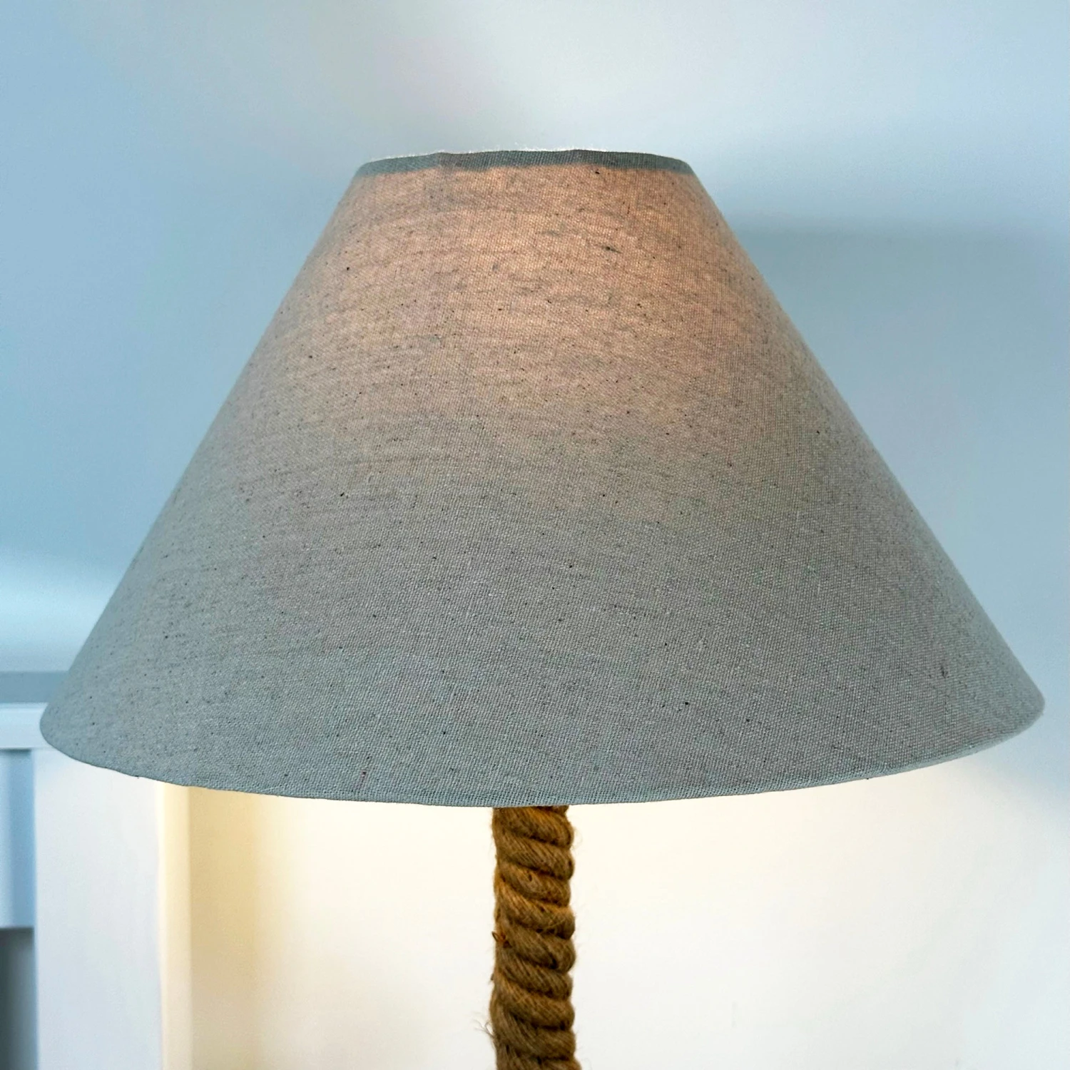 Create a nautical farmhouse atmosphere with our Twisted Rope Lamp! Using a wooden base and a conical fabric lampshade, this bedside light casts a warm, inviting glow for your special space. Enjoy the unique look and soft illumination of this delightful lamp!