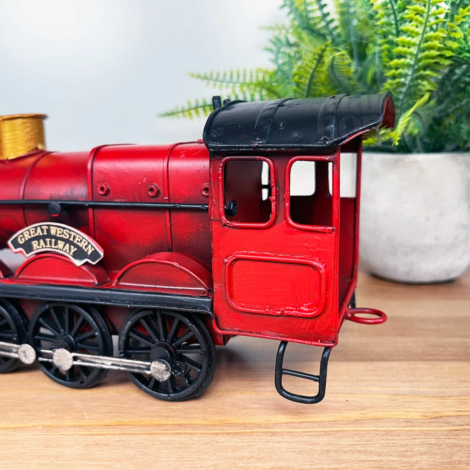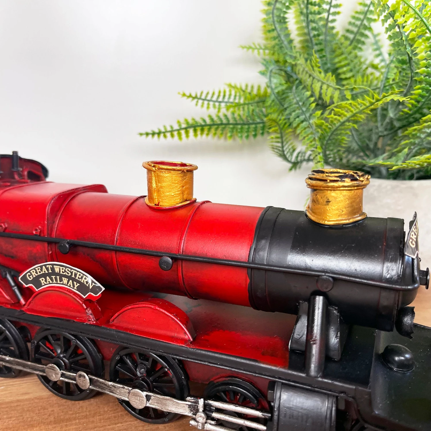 A brilliant high quality, fully assembled collectable item showcases a classic red and black locomotive steam train model. This is a popular vintage railway item that would serve perfectly as a gift idea for a train enthusiast.