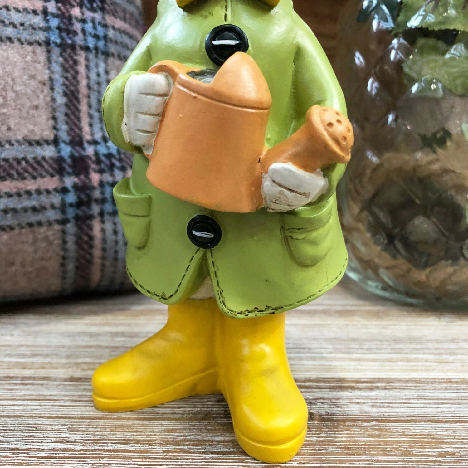 - Features: Freestanding, Watering Can, Green Rain Coat, Yellow Wellies, Frost-protected, Weatherproof