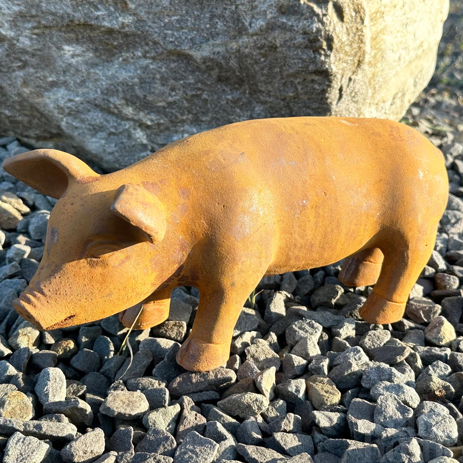 Made of hard wearing, heavy duty, weather resistant cast iron with a weathered rust finish, this rusty pig will offer a striking antique look wherever it is placed in your garden.