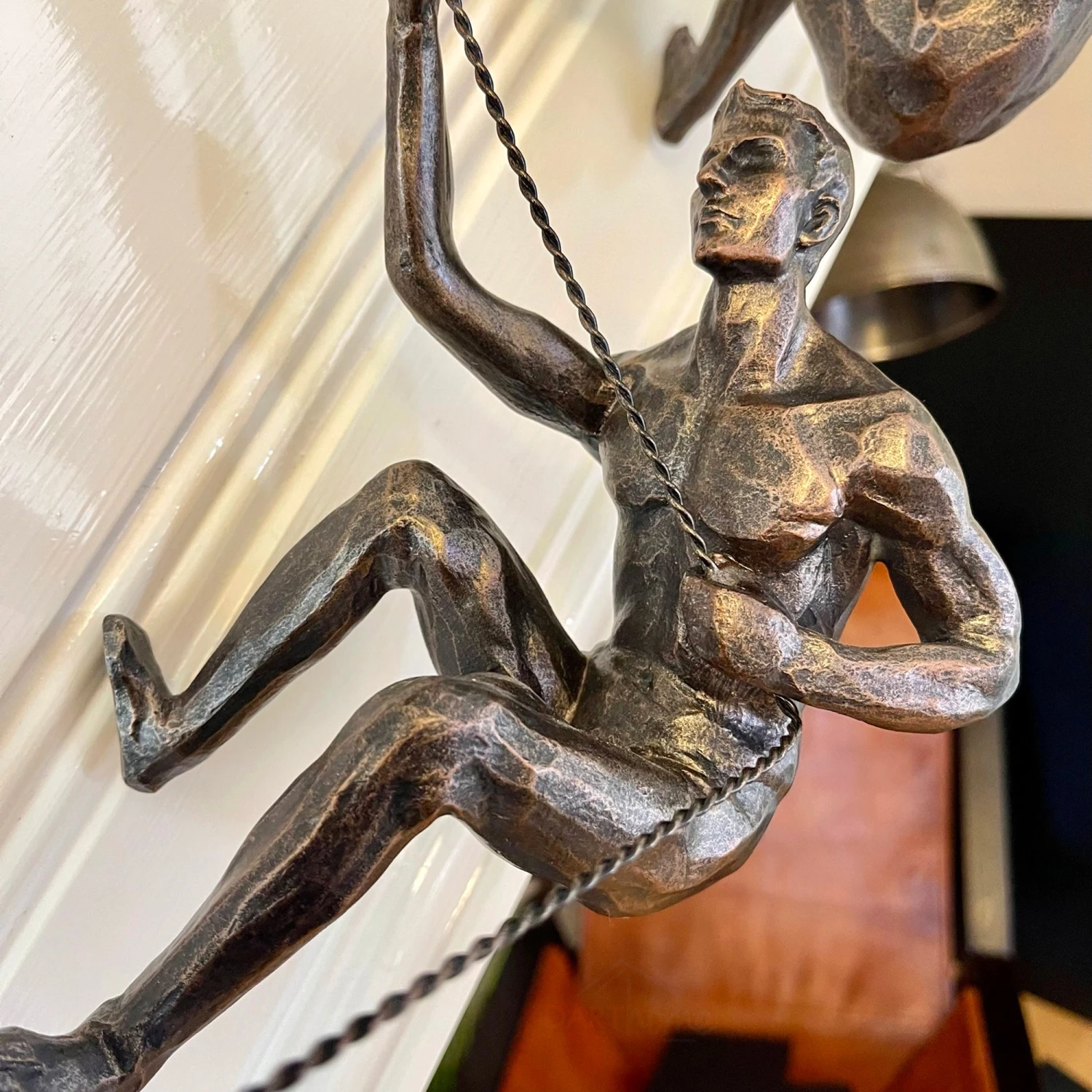 Features: Set Of 2, Wall Hanging, Metal Wire, Abseiling Man, Bronze Finish, Indoor