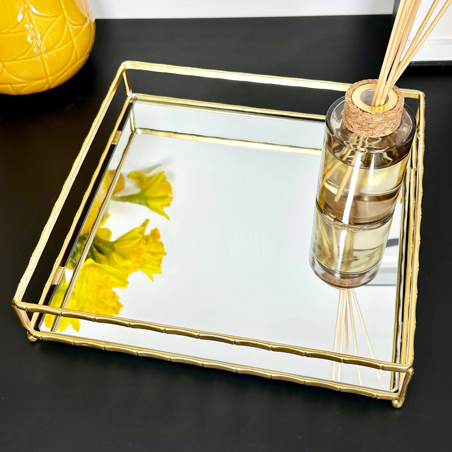 Brighten up your home with this set of 2 gold square mirrored decorative trays. They will bounce light around any room, making sure to grab the eye of all of your guests.