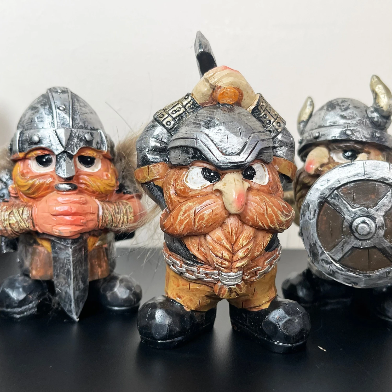 This fun and intense set of 3 miniature viking figurines are perfect for bedroom decoration. This assorted collection of nordic warriors are made from resin with distressed finishes to offer a vintage retro look.