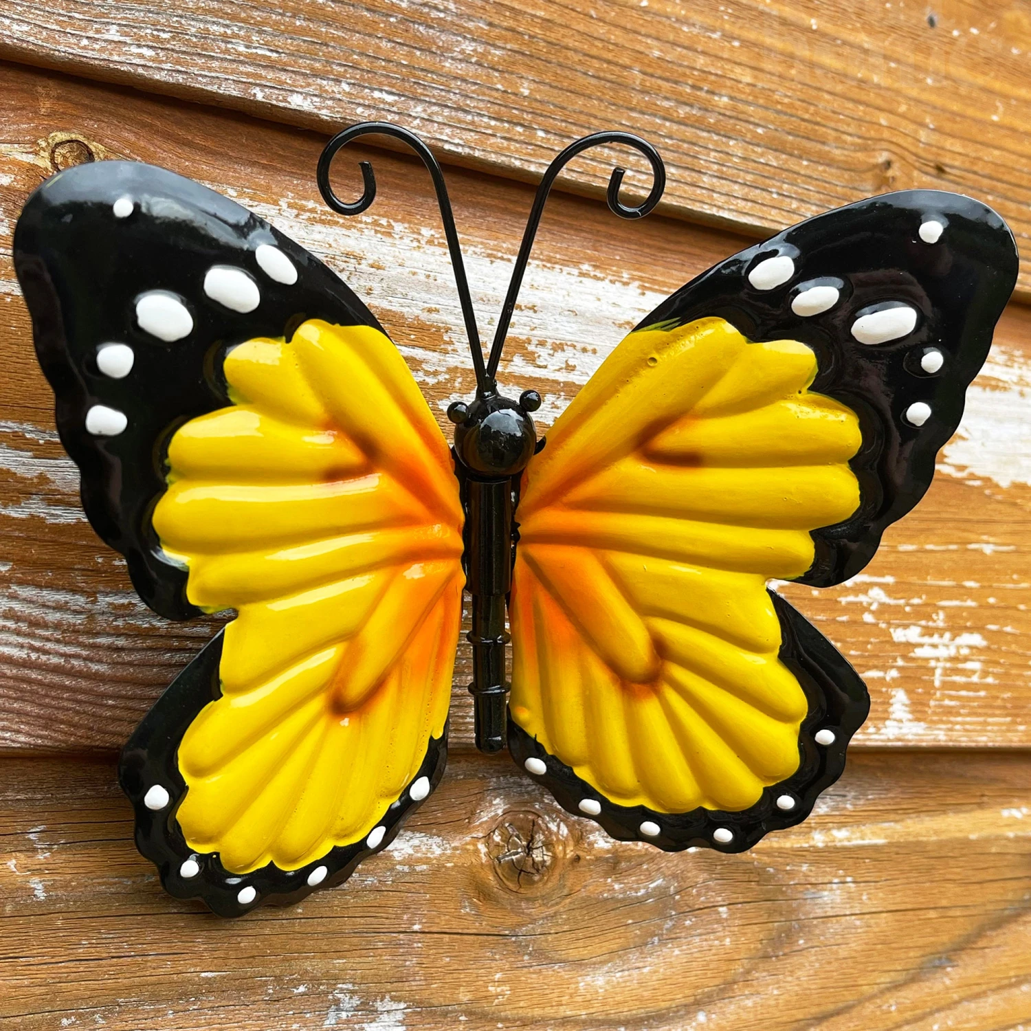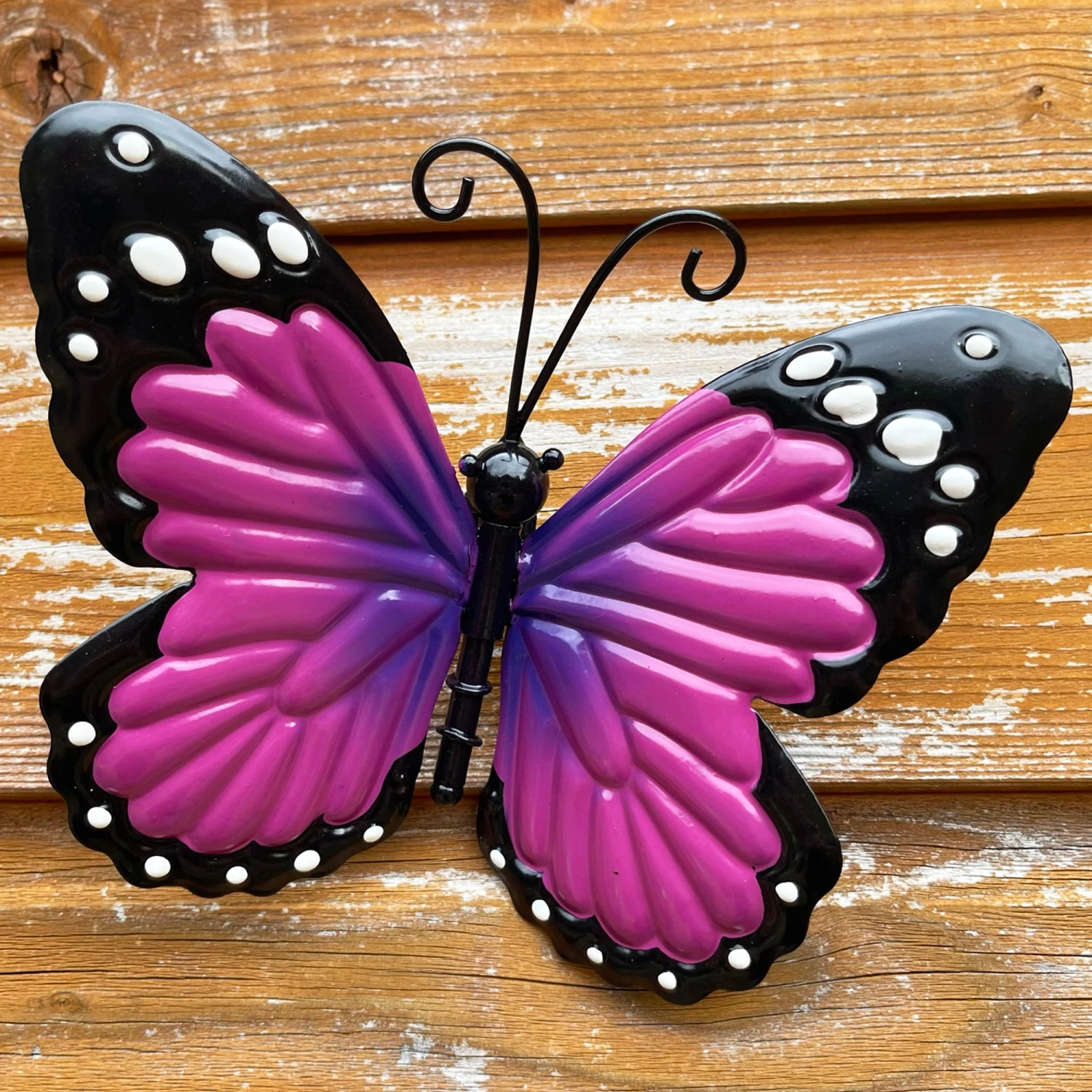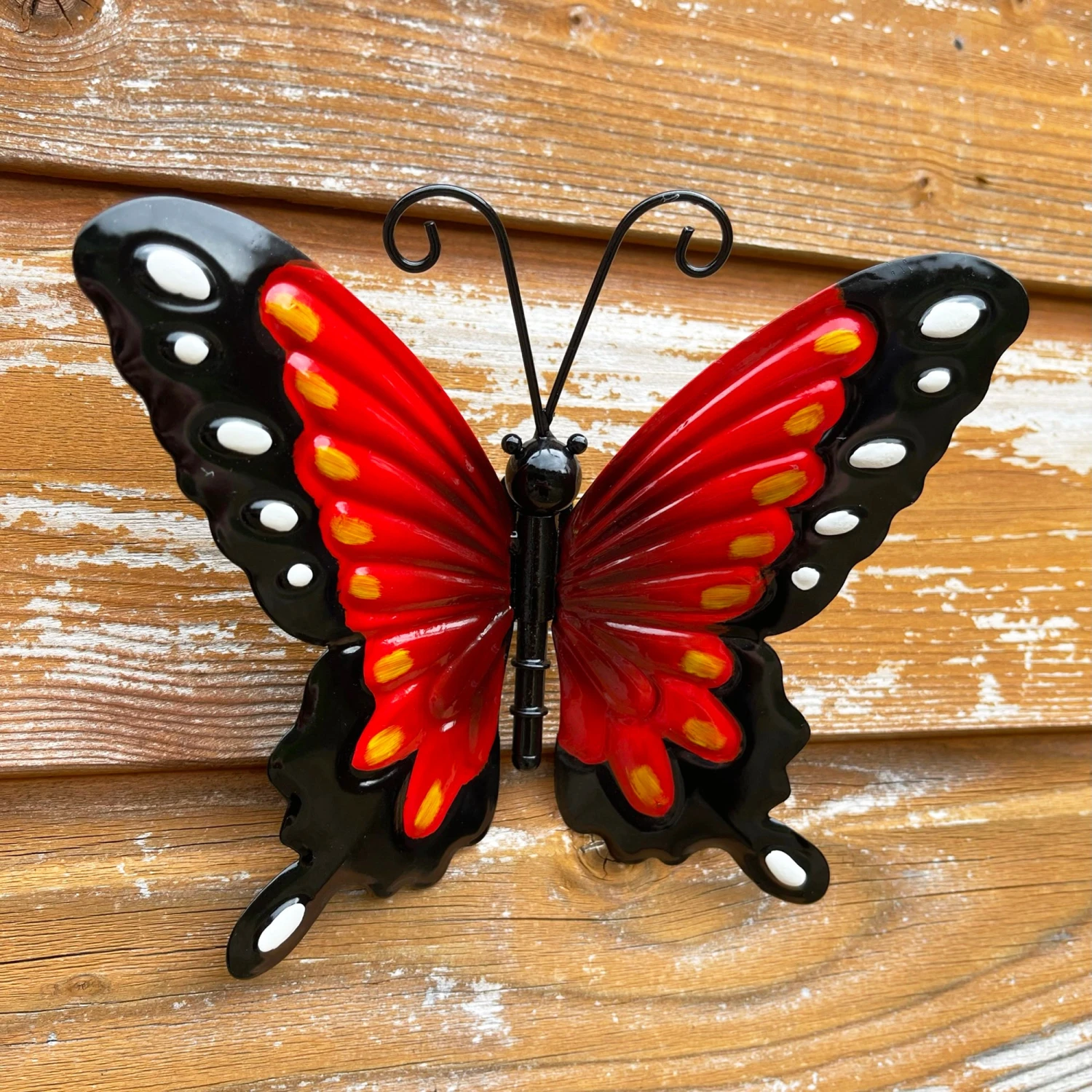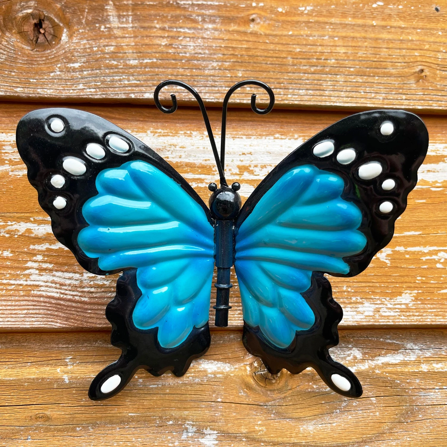 Set of 4 metal butterflies in an assorted of bright glossy colours. Perfect for hanging on the garden fence or gate, these bright and beautiful metal glossy light blue and black 3D butterfly wall arts will spice up the garden and add a splash of colour wherever placed. They are a must have for your home.