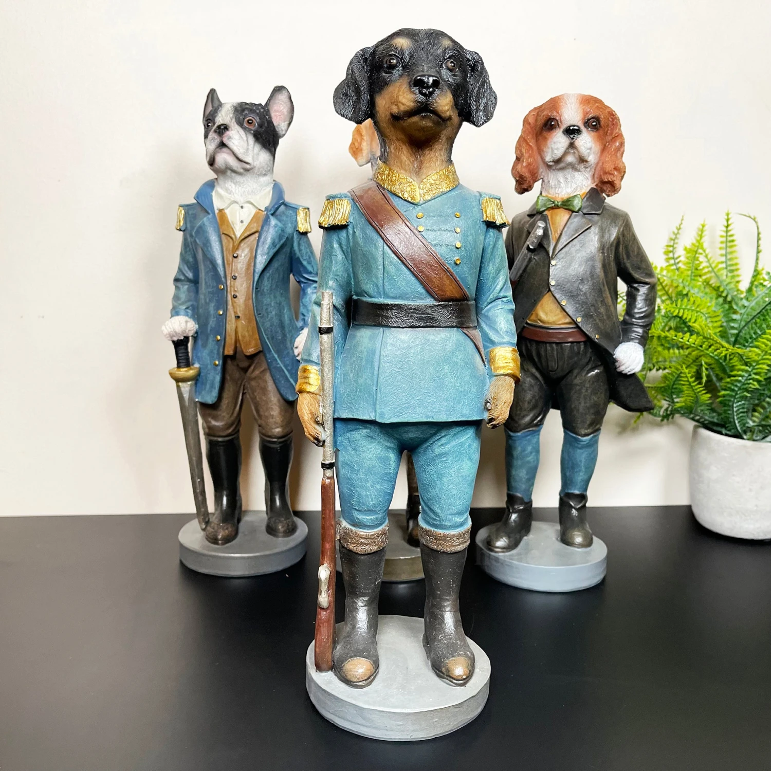 This complete set of 4 resin military dogs comes in an assortment of designs: French Bulldog, Spaniel Dog, Beagle Dog and Daschund. Our quirky dogs boast a smart military uniform and stand proud upon a round base.