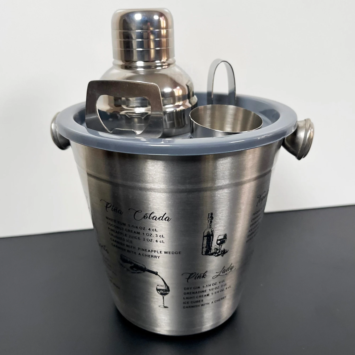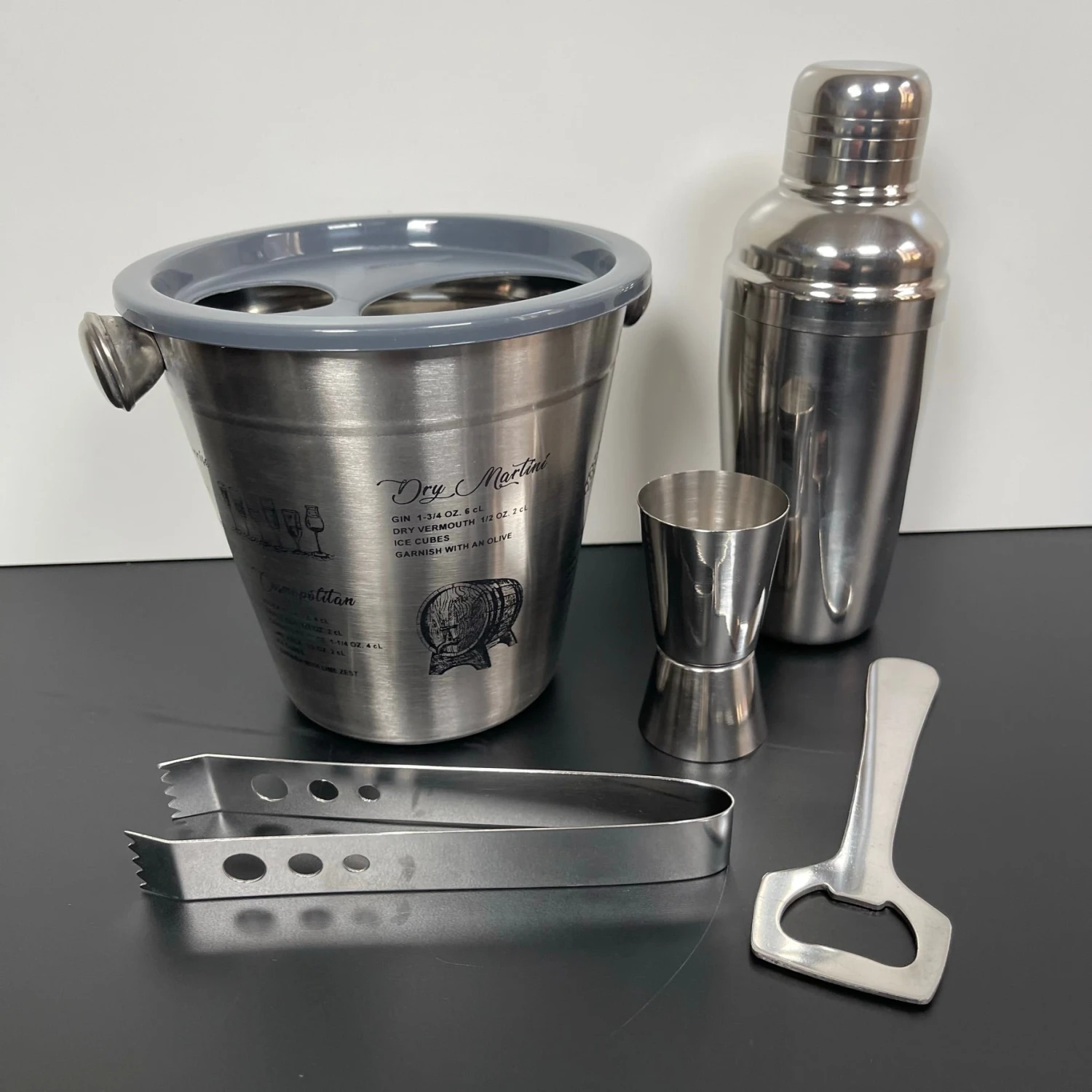 This 5 piece cocktail making set gives you everything you need to create your favourite drinks – even the recipes on the side of the bucket! This is a stylish and durable set made from stainless steel with a plastic lid that packs everything together nicely to put back in the cupboard.