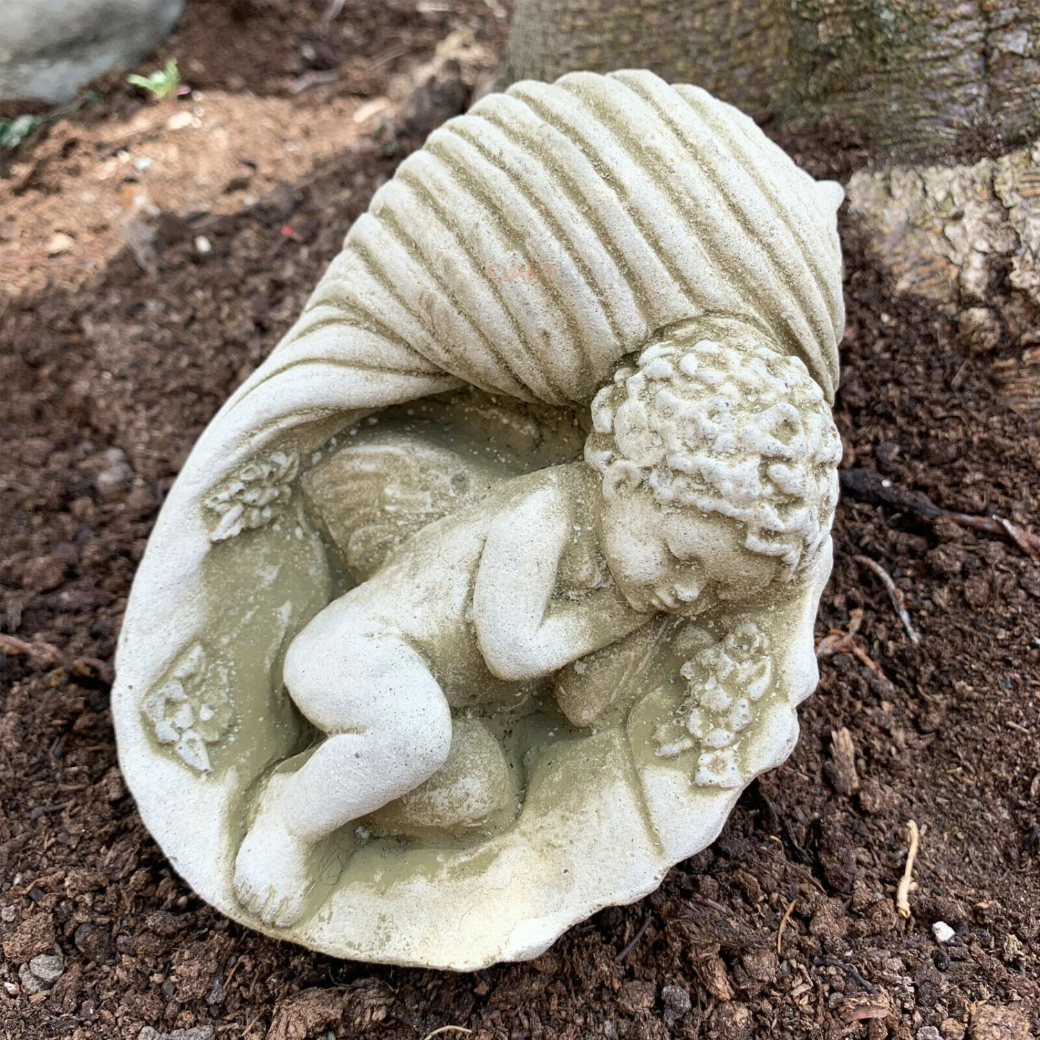 - Features: Outdoor, Freestanding, Frost-protected, Weatherproof, Sleeping Angel Boy, Large, Small Oval Round Shaped Shell