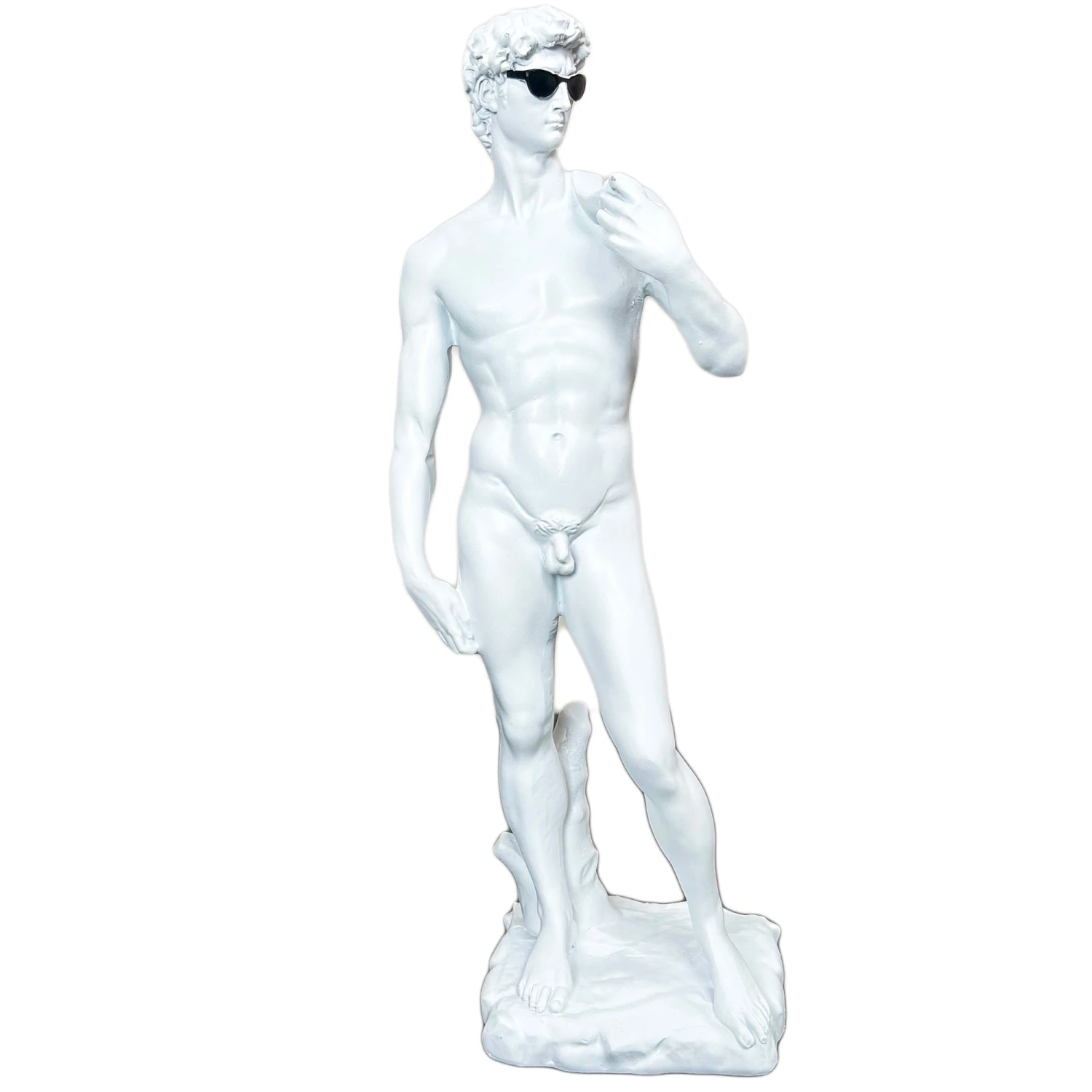 Add some playful charm into your home with our spiced up cool version of the classic David Michelangelo figure ornament. Our cool dave comes in a smooth matt white with cool black glasses on. Made from resin, this modern sculpture will quickly enhance a living room with its striking design and colour.