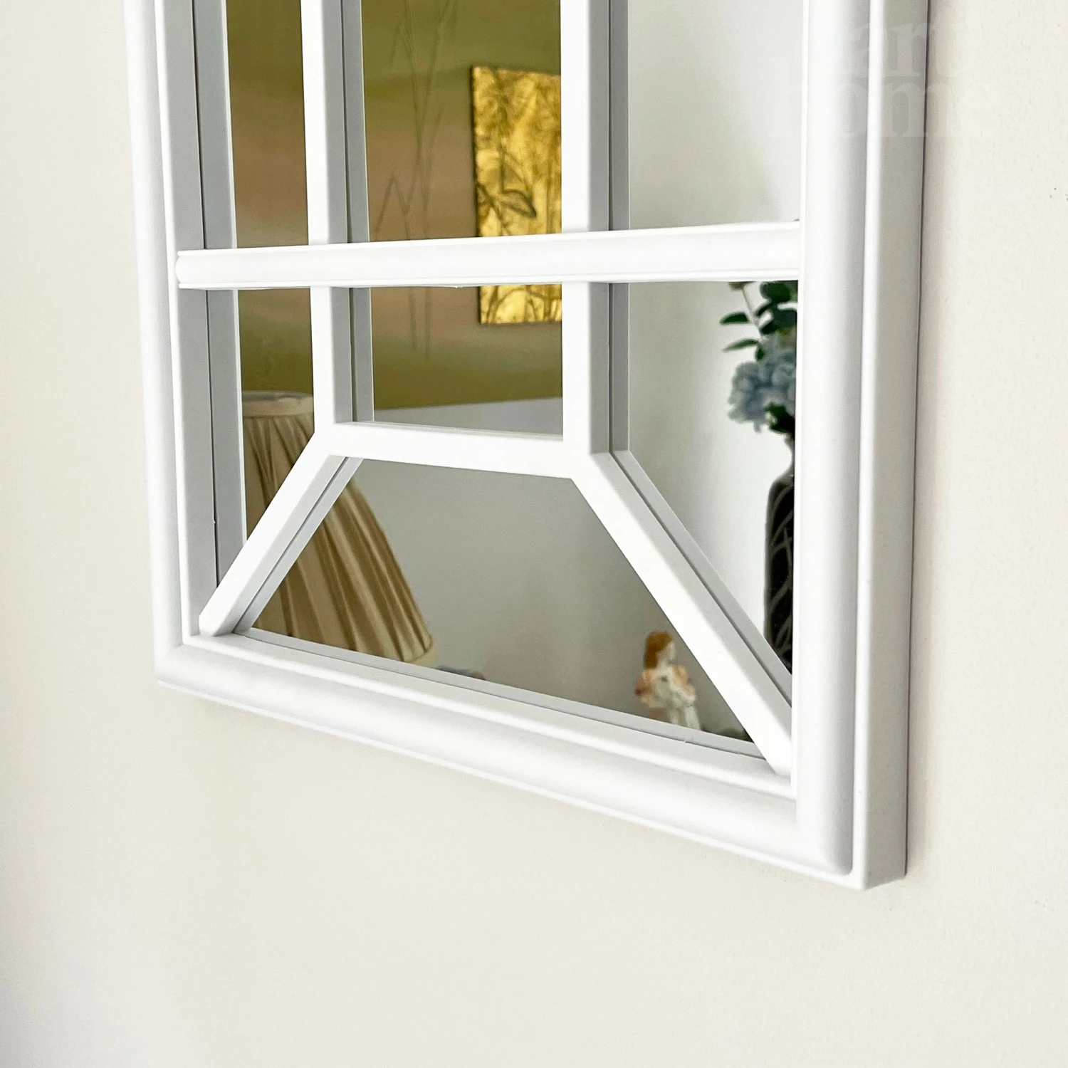 This plastic framed window gothic arched wall mirror has a modern matt finish and is perfect to reflect light and add depth to any garden or home.