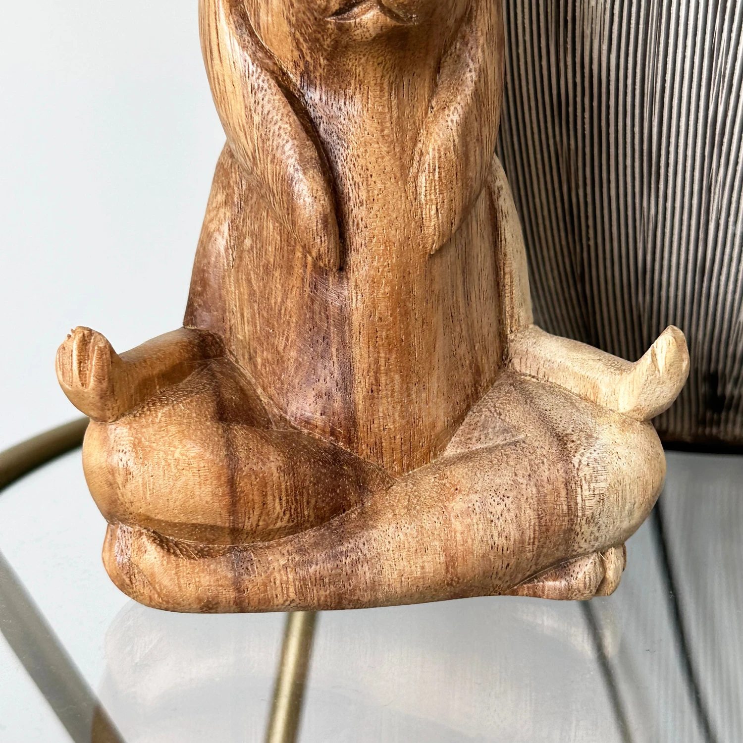 This small yoga bunny sculpture would be a lovely addition to your home and a wonderful gift for your yoga loving friends. This little bunny rabbit ornament is handmade and hand carved from wood with a smooth natural finish.