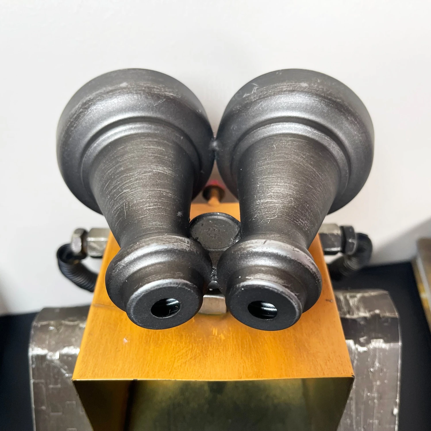 A quirky robotic decoration featuring a yellow robot transformed into a square clock, perfect for a mans gift to style on a desk or bedside table. This yellow robot clock is made from metal with a distressed brushed finish. It features an arabic numeral 12 hour display and is battery operated with an AA battery that is not supplied.