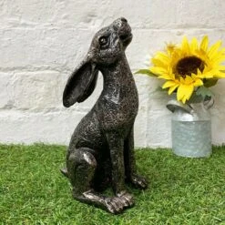 Medium Bronze Resin Sitting Hare Garden Statues 23cm